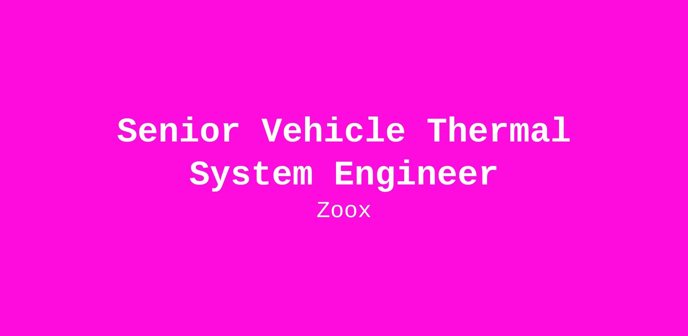 Zoox is seeking a Senior Thermal System Engineer to join our Vehicle System Integration engineering team. In this key role, you will drive the system requirements, functional architecture, integration, and verification activities to achieve end to end system capability. Collaboration with cross-functional teams is essential, as you'll work with vehicle integration, feature integration, firmware and vehicle component development teams to deliver the overall reliability and performance of our cutting-edge vehicles. We are looking for an engineer that is passionate about developing a ground breaking Robotaxi, has a strong system engineering background, has extensive thermal system experiences, has system problem-solving skills and has a commitment to deliver on time.