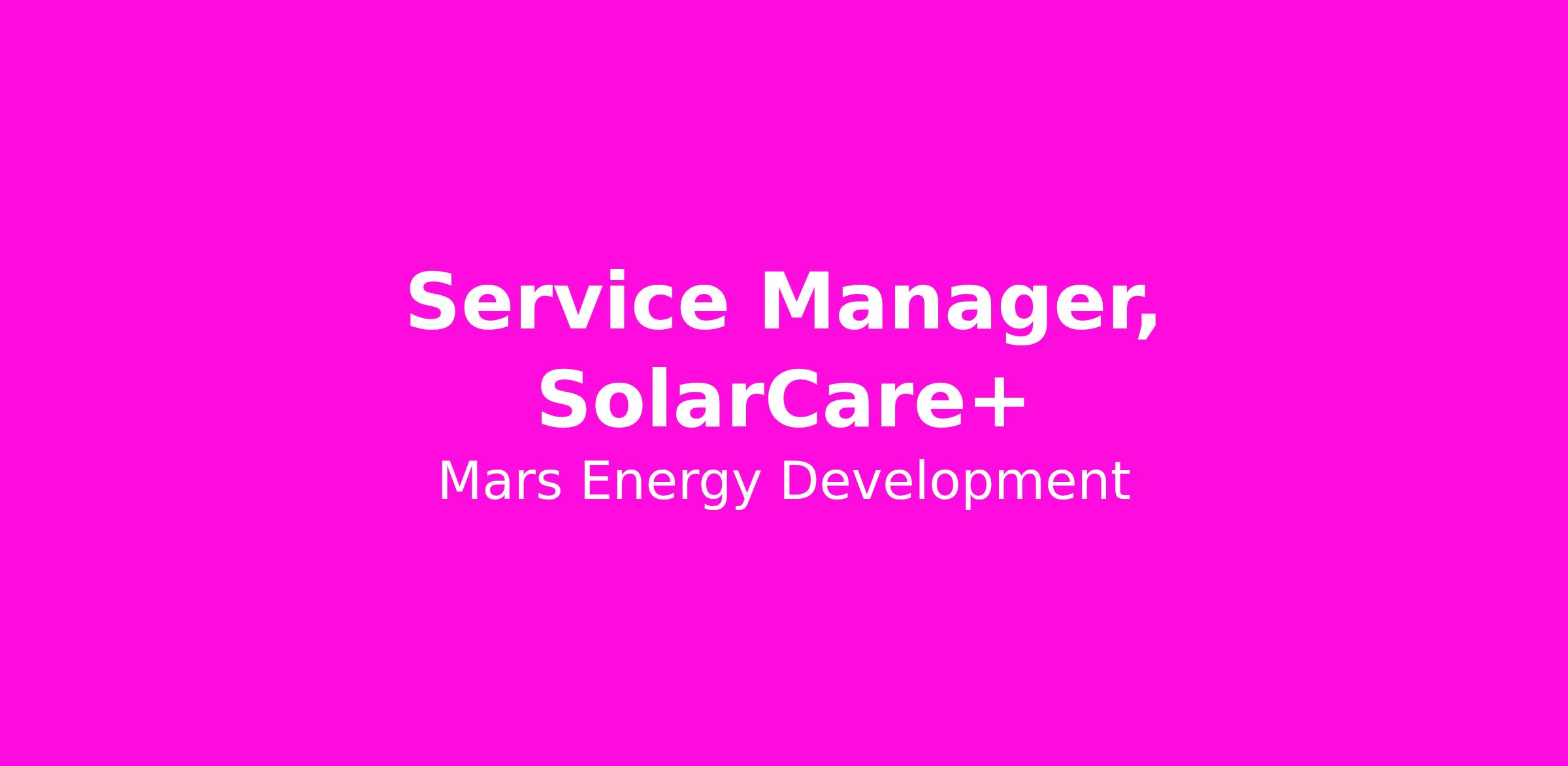 The Service Manager of SolarCare+ is responsible for leading and managing the SolarCare+ service function, including oversight of personnel, service operations, and performance across active solar sites.