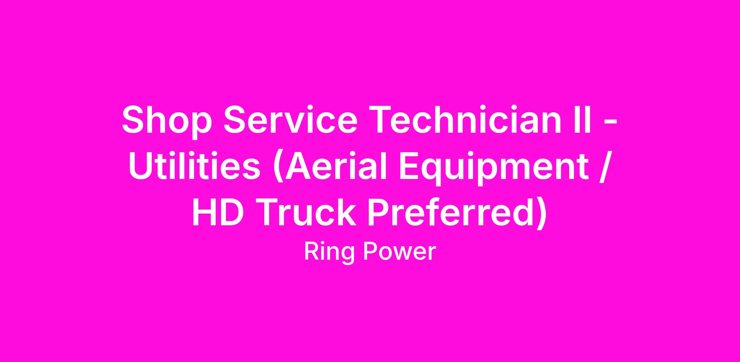Shop Service Technician II - Utilities (Aerial Equipment / HD Truck Preferred)