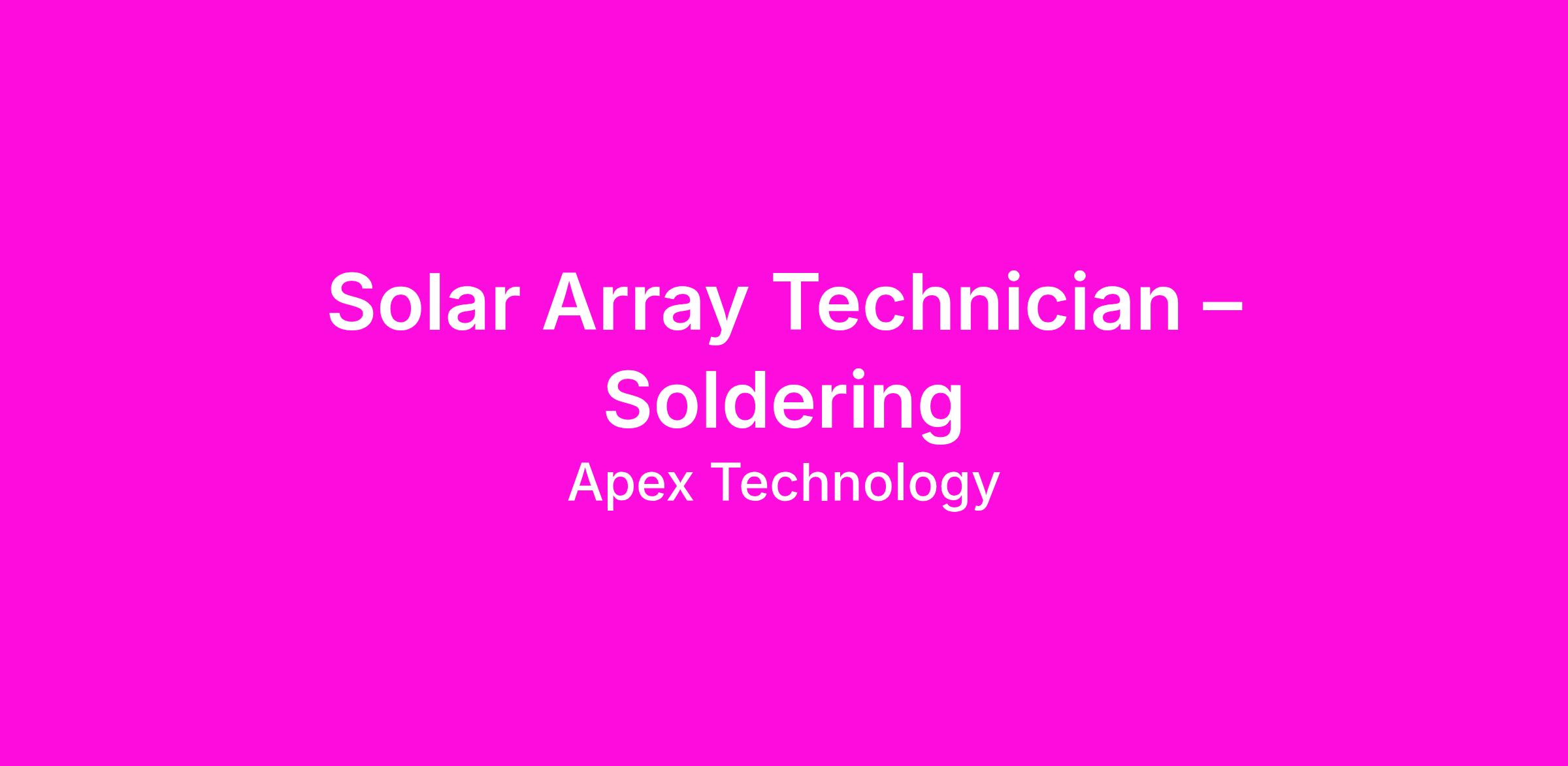 Apex Space is seeking a Soldering Technician to perform precision soldering operations on solar array assemblies, including cell stringing, ribbon soldering, and interconnect work. You will be a critical contributor to our solar array production line, where workmanship quality directly affects spacecraft power generation performance.