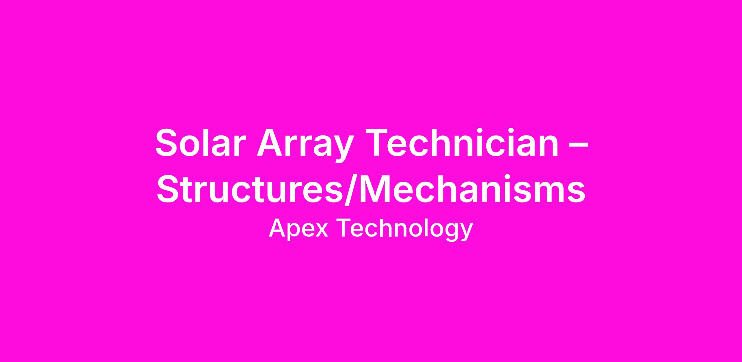 Apex Space is seeking a Structures & Mechanisms Technician to support the assembly and integration of solar array mechanical systems within our satellite bus production line. You will work alongside mechanical engineers to build, align, and verify deployment mechanisms, pantograph assemblies, hinges, and structural subassemblies to tight engineering tolerances.