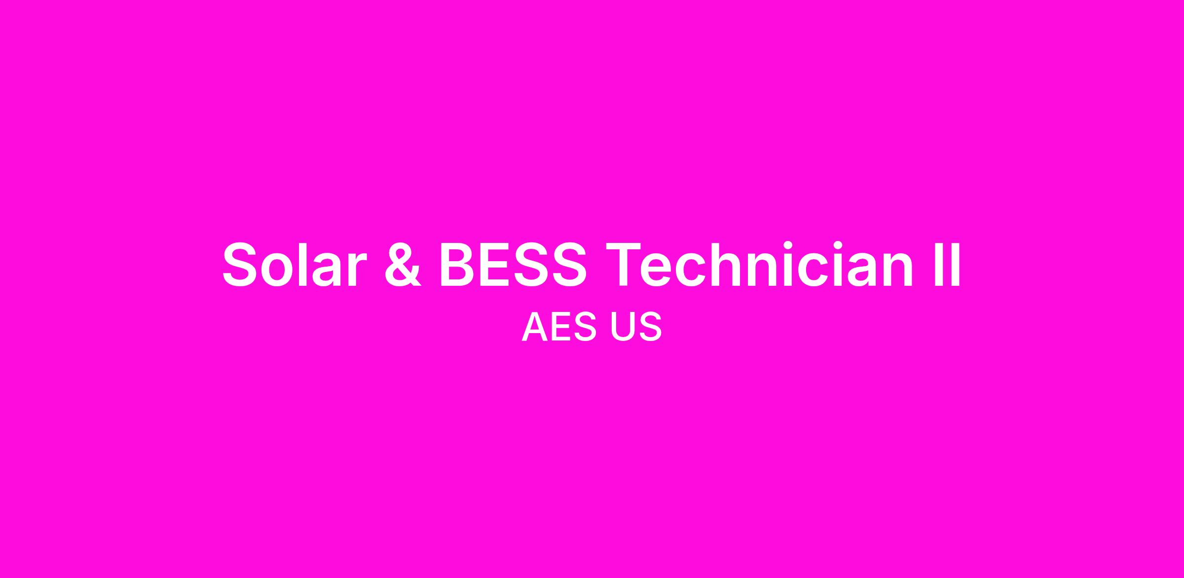 AES CE is an established and rapidly growing renewable energy company headquartered in Salt Lake City. The AES Operations team is looking for an experienced Solar Technician II with field experience, this individual would play a pivotal role in ensuring that AES CE operates the portfolio to standards that exceed industry best-practice. The ideal candidate will be a self-starter, and have the ability to build, train and lead other field personnel. As AES CE grows to become one of the leading IPPs in the industry, this role will provide an unparalleled opportunity for professional growth.