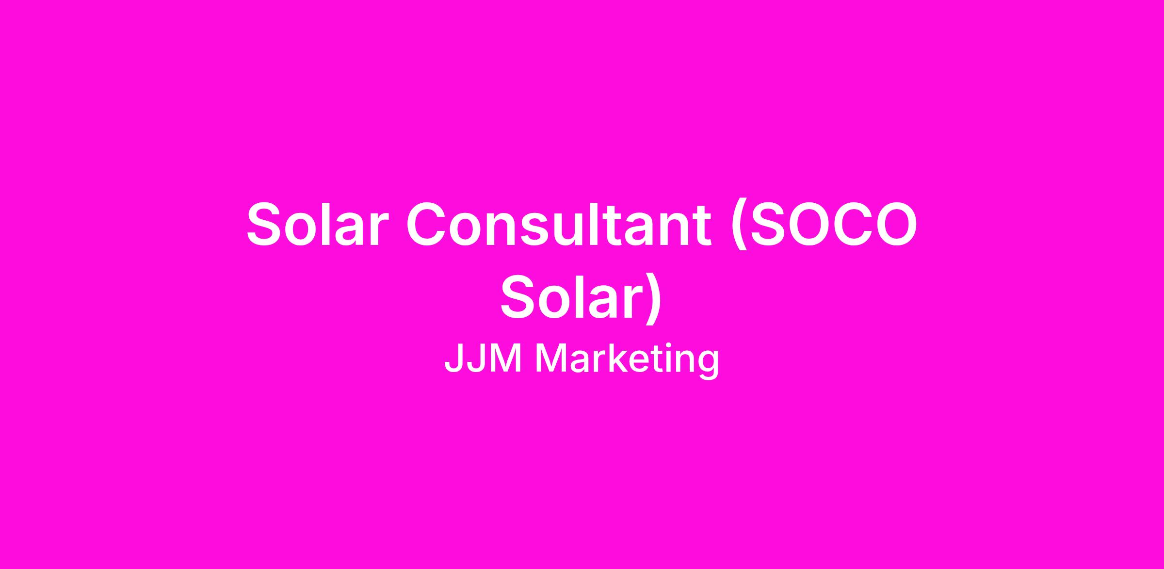 DescriptionJoin SOCO Solar as a Dedicated Solar Consultant!