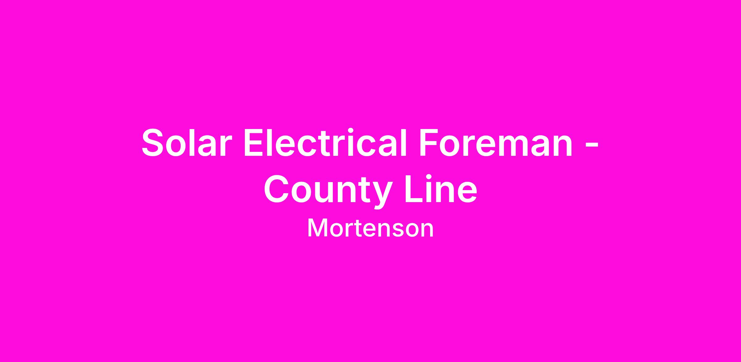 Mortenson is currently seeking an Electrical Foreman that will be responsible for providing skilled craftsmanship for maintenance and installation of electrical systems. Provides oversight to Electrical craft team members.
