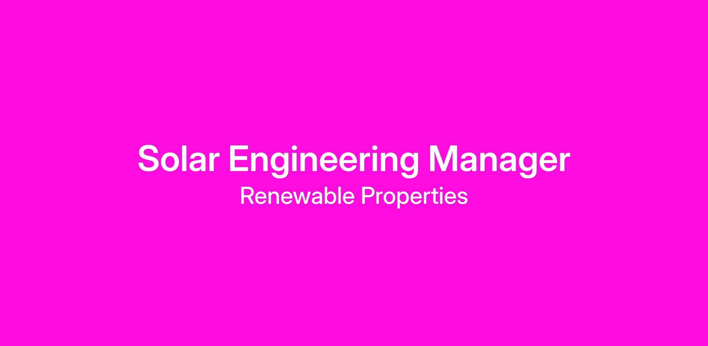 Renewable Properties is seeking a talented Solar Engineering Manager to play a key role in leading technical strategy and engineering projects across our distributed-generation (DG) solar and energy storage project portfolio. This role is central to the full project lifecycle supporting development diligence, steering design through construction, and driving technical excellence across the organization. The ideal candidate is a motivated and seasoned engineering manager with strong organizational skills, is detail oriented, experienced leading design and engineering activities through development, interconnection, permitting, procurement, and construction of solar and energy storage projects, and who is excited to bring innovative thoughts and ideas to their projects. This is a unique opportunity to play a critical role in developing Renewable Properties’ success during this exciting time of explosive growth in a changing and impactful industry.