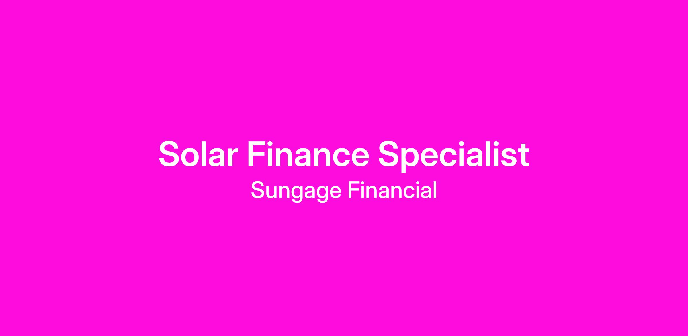 Sungage Financial has revolutionized the residential solar industry by offering a consumer-friendly approach to going solar. We need your help to create an even better experience for our customers and get more people going solar than ever before.