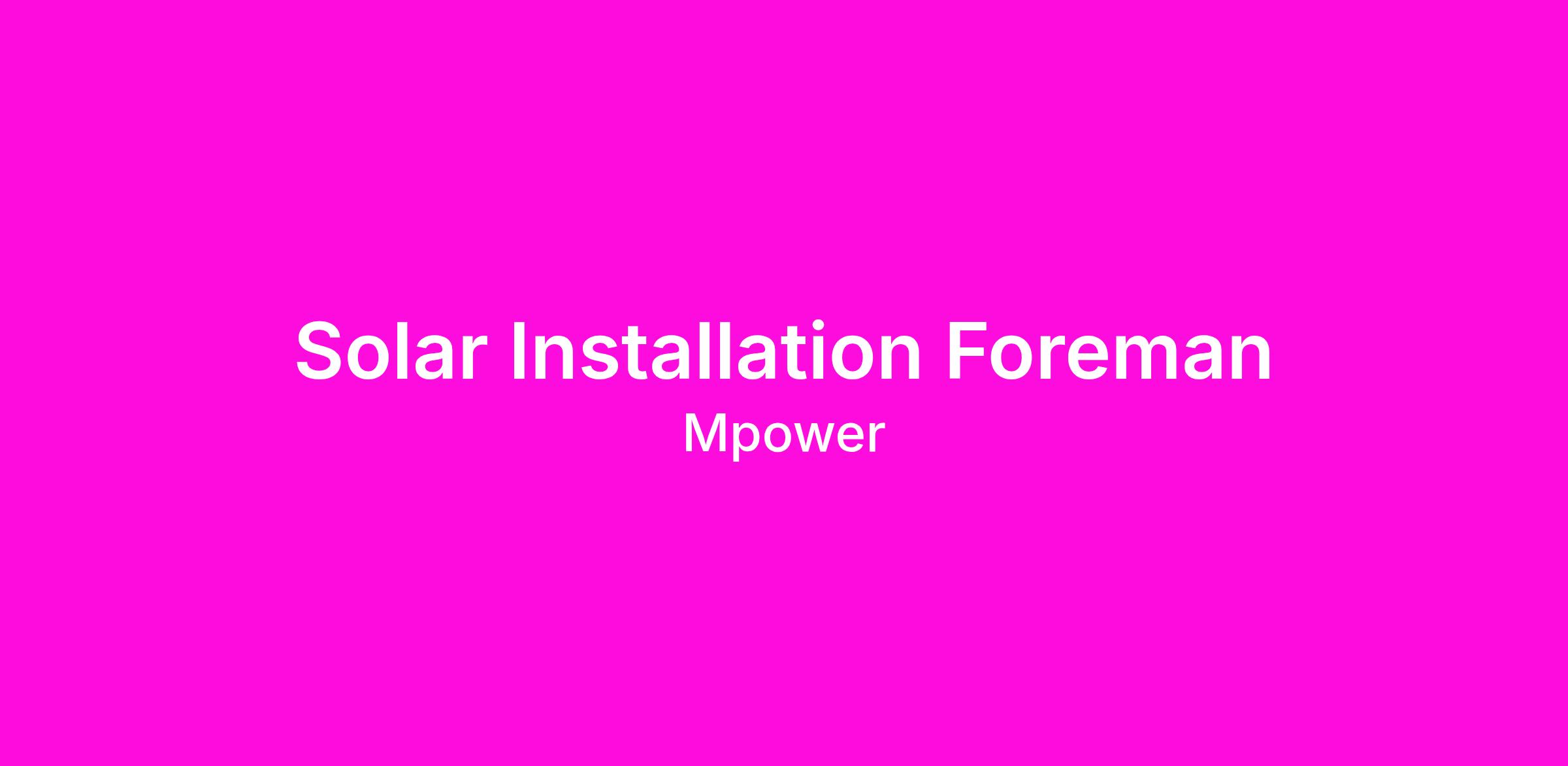 We’re hiring a Solar Installation Foreman to lead our install crews in the field. This is a hands-on leadership role that combines strong electrical skills with team management.The ideal candidate is proactive, detail-oriented, and committed to delivering safe,