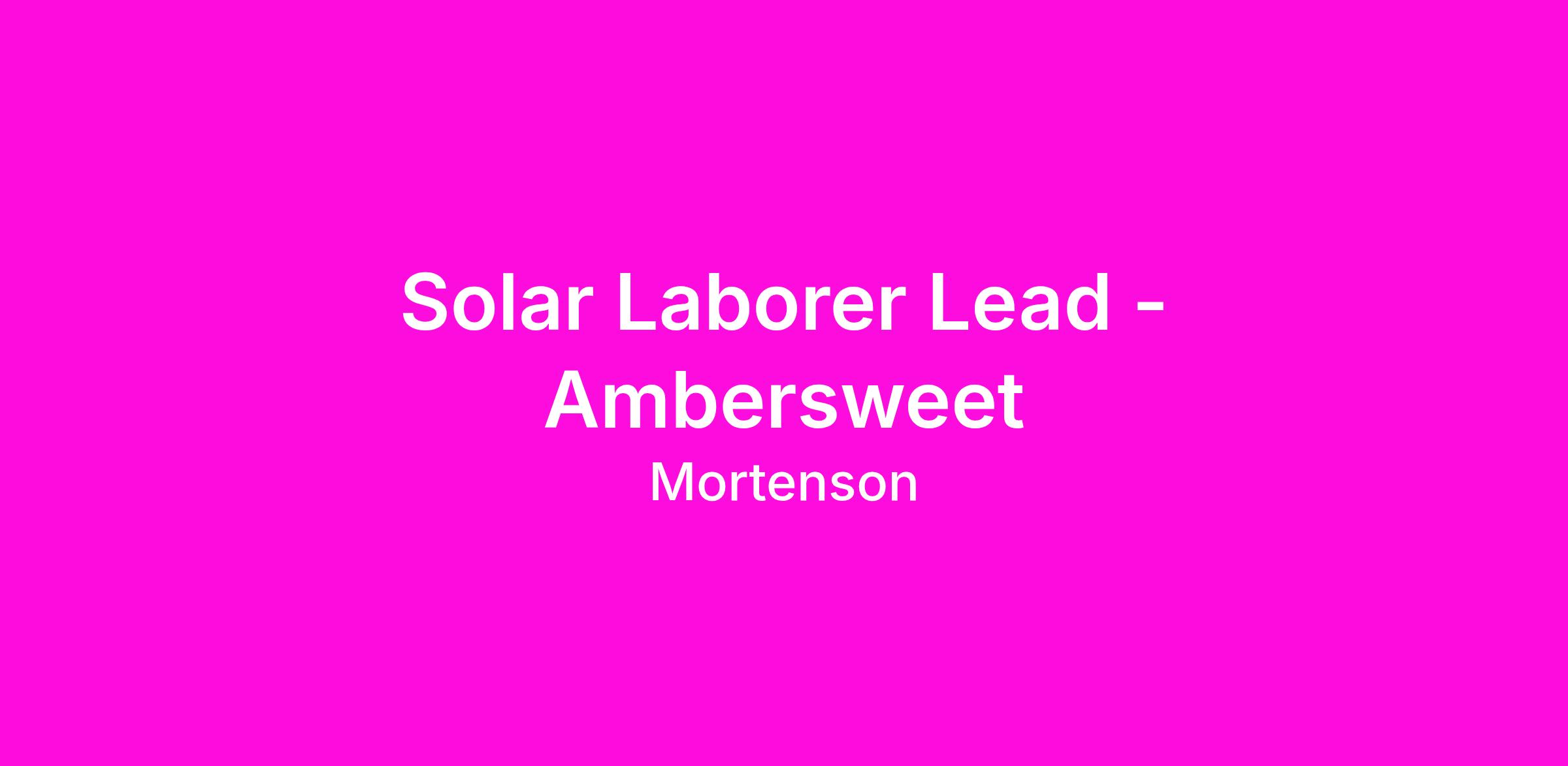 Mortenson is currently seeking a Solar Laborer Lead that will be responsible for the preparation, handling, and supplying of materials to be used by other crafts.