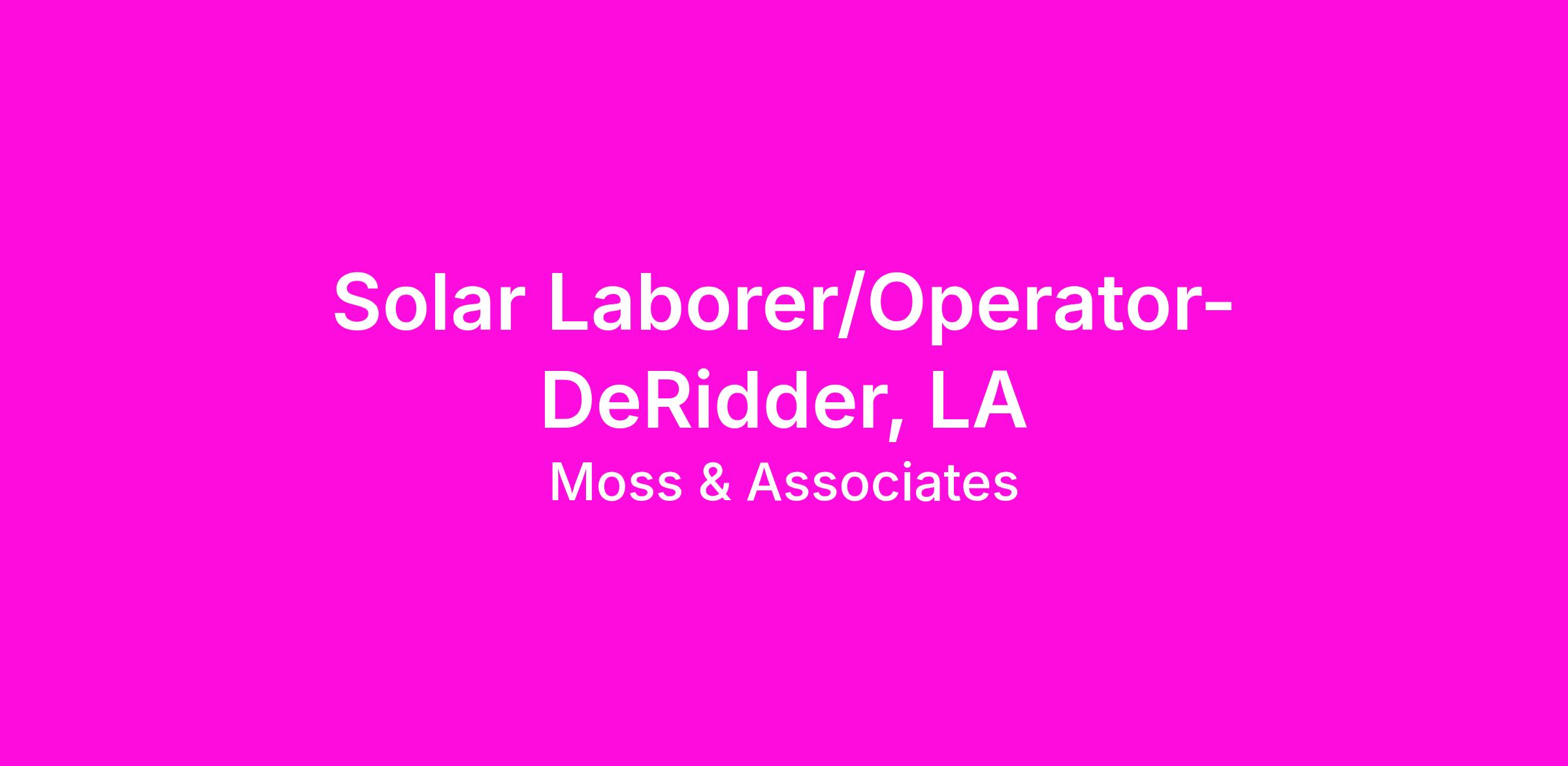 Solar Laborer/Operator- DeRidder, LA