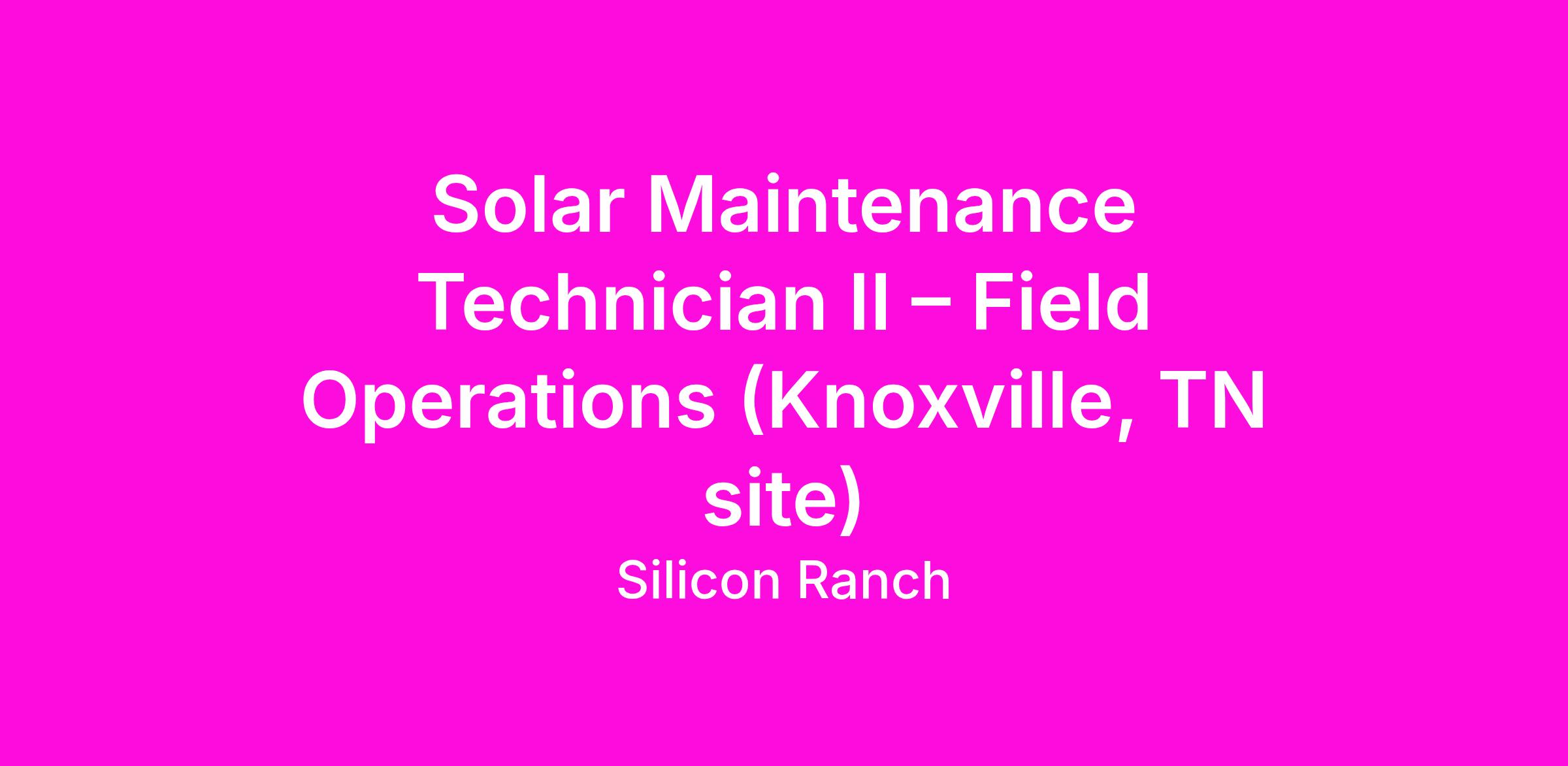Solar Maintenance Technician II – Field Operations (Knoxville, TN site)