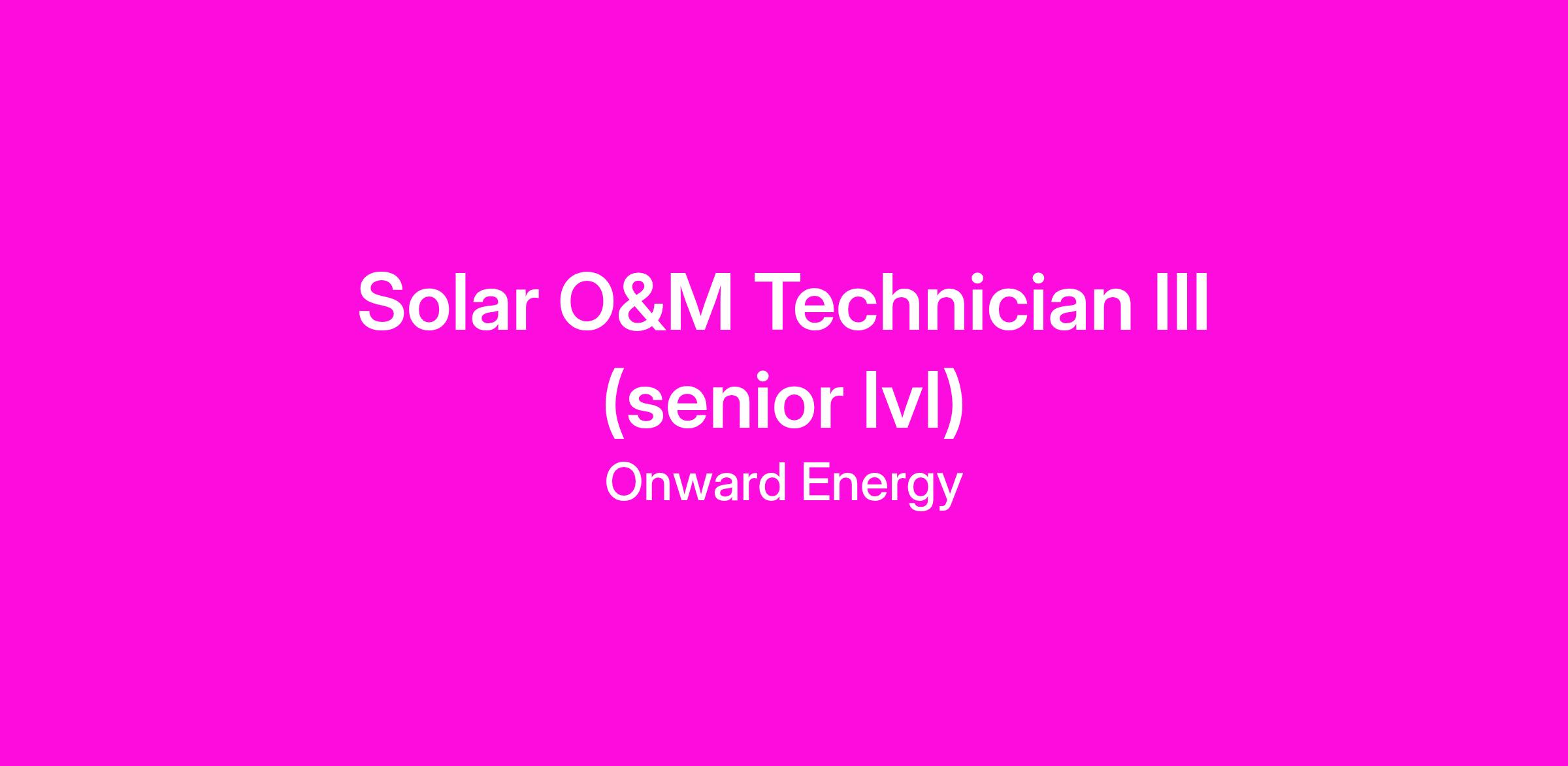 Job Title: Solar O&M Tech III