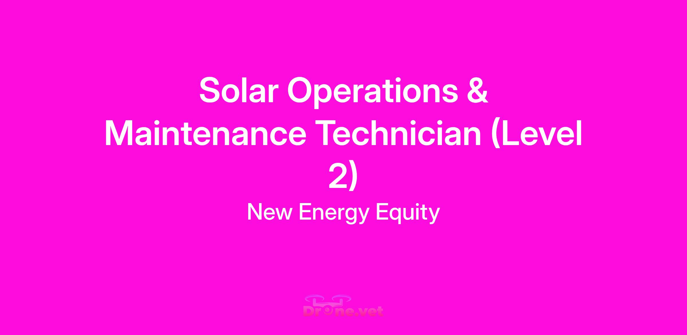 Are you a skilled electrician with a passion for renewable energy? Do you enjoy troubleshooting complex systems and working outdoors? If so, we're seeking a dedicated Operations and Maintenance Technician Level 2 to join our team at Energy Support Services, a subsidiary of New Energy Equity! As an Operations and Maintenance Technician Level 2, you'll play a vital role in ensuring the optimal performance and efficiency of our solar projects.