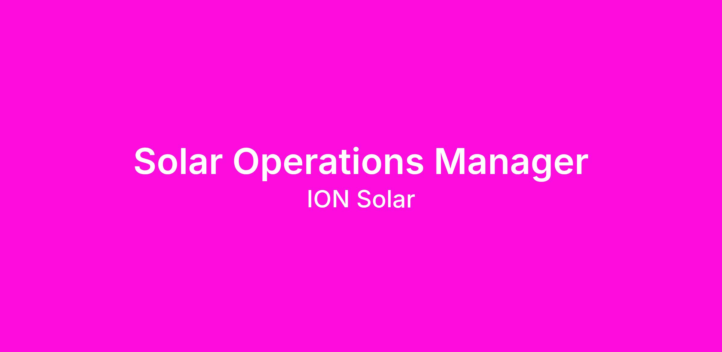 ION Solar is an equal opportunity employer. All applicants will be considered for employment without attention to race, color, religion, sex, sexual orientation, familial status, gender identity, national origin, veteran or disability status, or any other protected class.