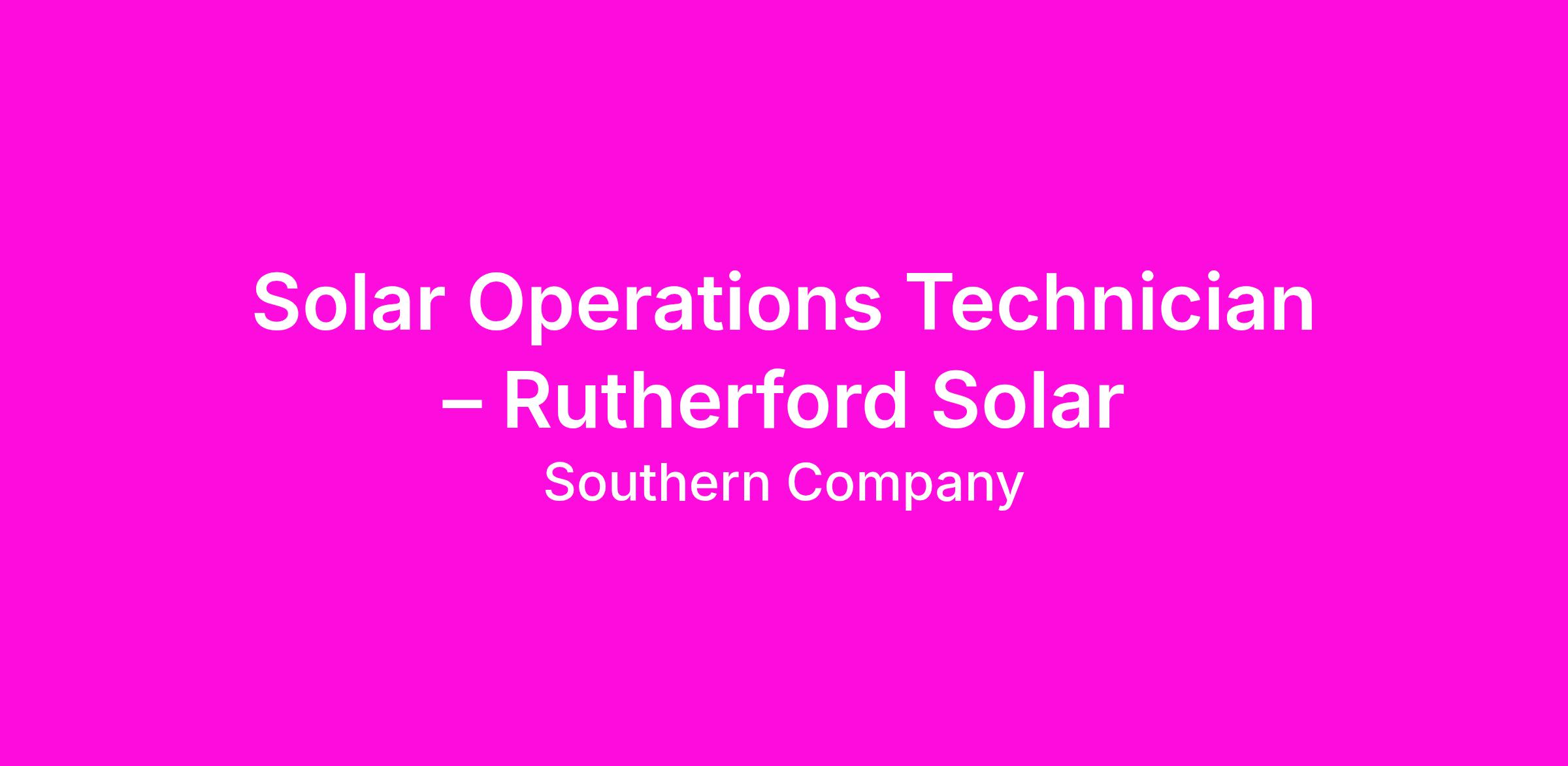 Want an innovative challenge? Solar technology is rapidly developing in the traditional Southern Company footprint and here’s an opportunity to be a part of it. We are seeking strong technical individuals for Solar Operations Technician position for Southern Power’s Rutherford Farm solar facility in Rutherford County, North Carolina. This position will also support our Granville Solar Facility as needed in Granville, County, NC.
