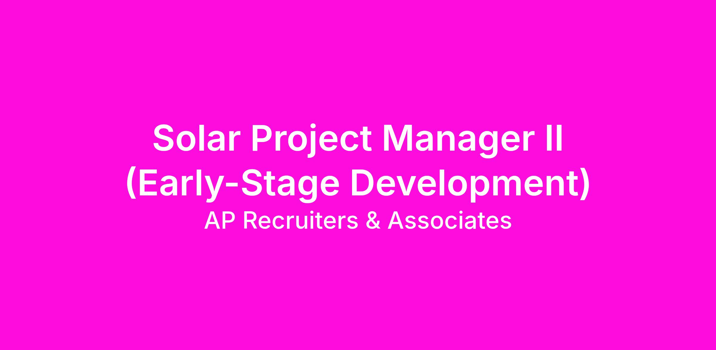 Our client is a leading renewable energy company and the world's largest renewable construction organization. Join their Early-Stage Solar Engineering & Construction team as a Project Management Consultant, where you'll play a pivotal role in managing solar projects from conception through early development phases.