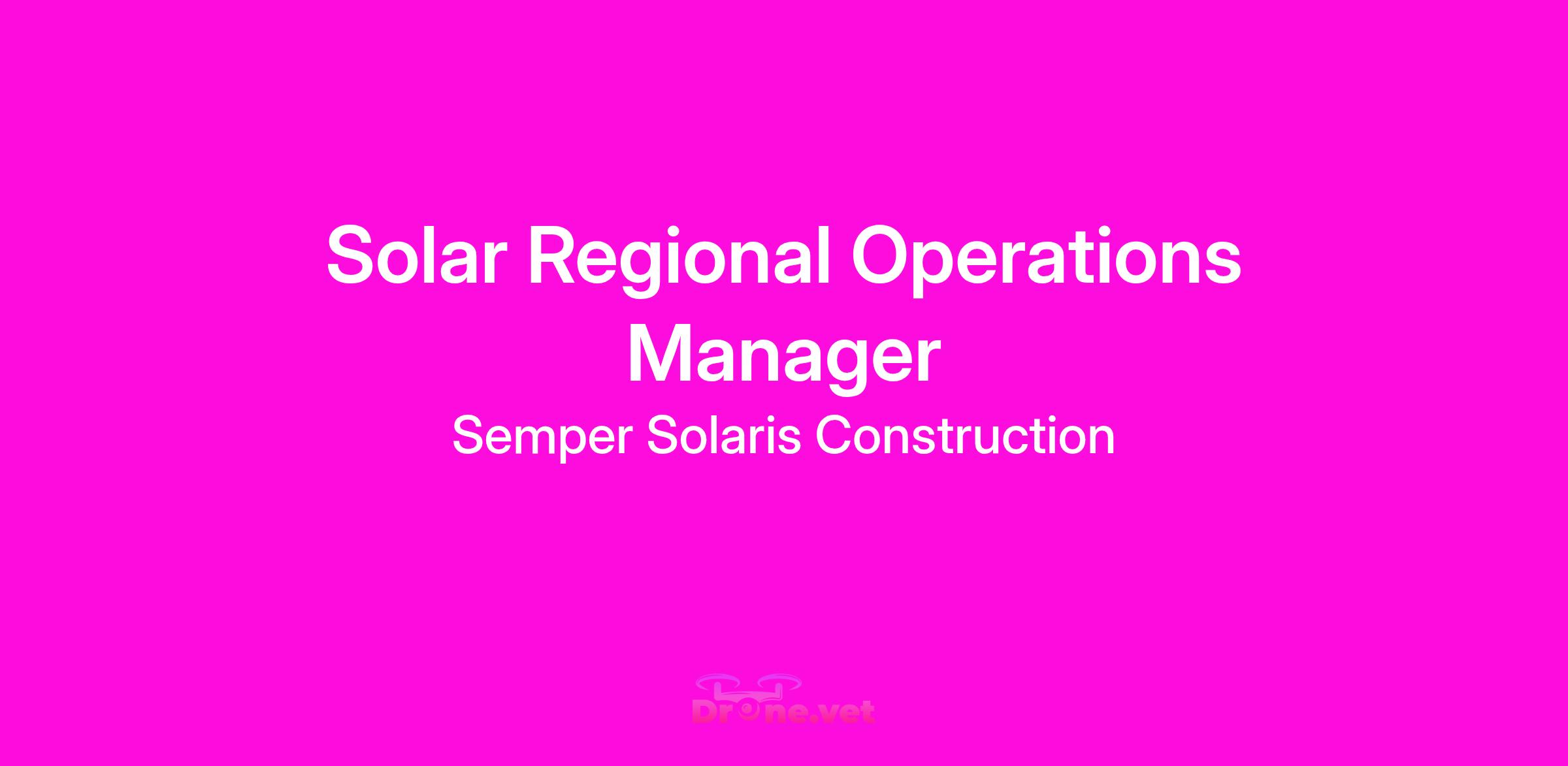 Semper Solaris is looking for an organized and motivated Regional Operations Manager for our Solar Operations department for our Manteca location. This person will perform a wide variety of technical, administrative and communication duties including but not limited to Managing technical team members, coordinating with customers, sales representatives and other colleagues to quickly drive project completion and customer satisfaction. Must have previous experience in a similar role!