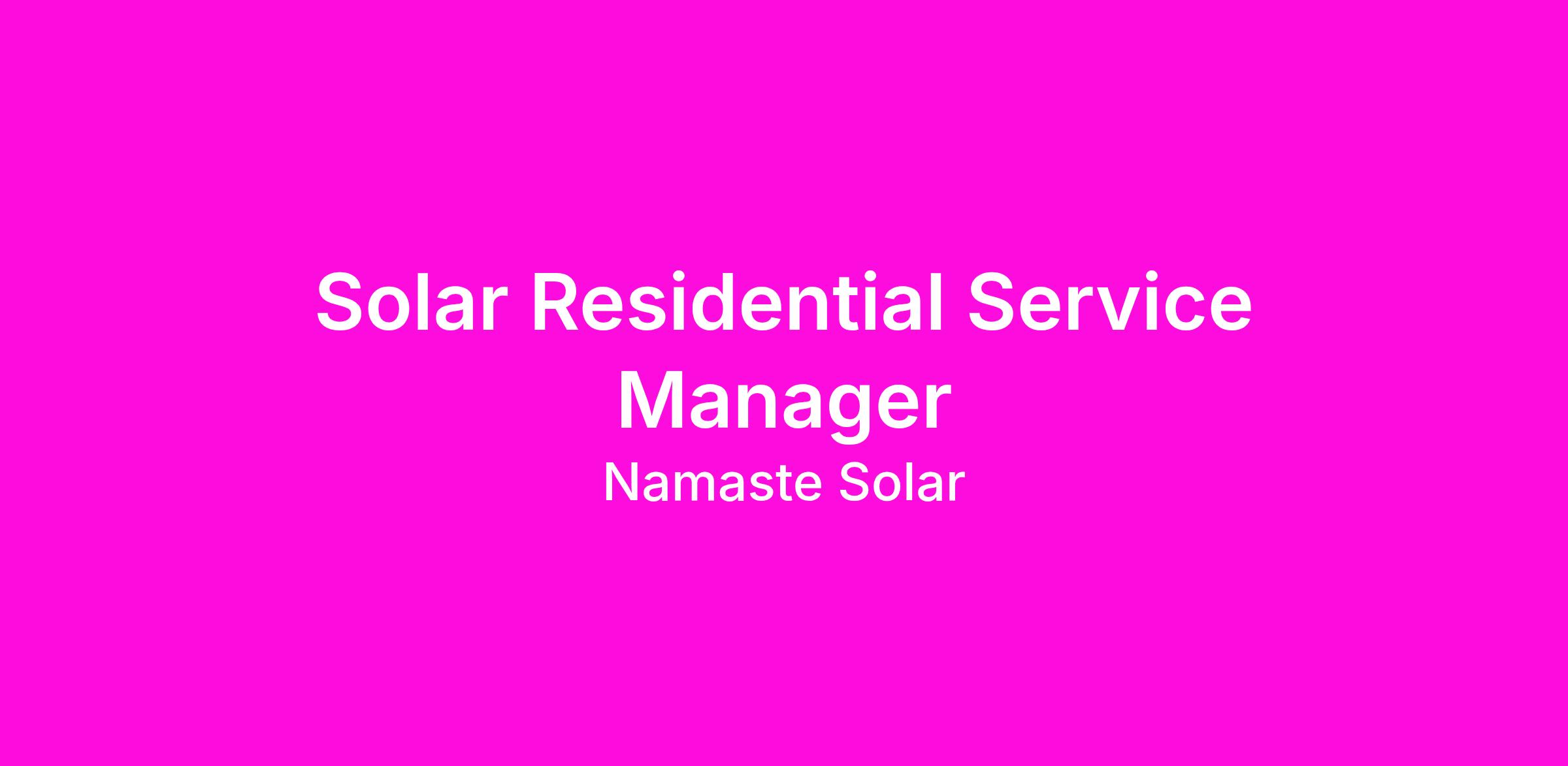 The Residential Service Manager is responsible for the day-to-day management of Namaste Solar's Residential Service team. This position ensures operational excellence, profitability, safety, and customer satisfaction while fostering a culture of quality. The role includes strategic planning, budgeting, KPI development, and close collaboration with the Director of Residential Operations to align departmental goals with company objectives.