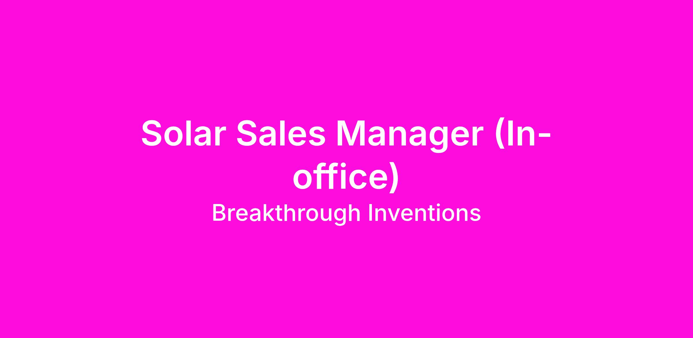 If you have never sold solar panels to homeowners or commercial clients, this role is not a fit.