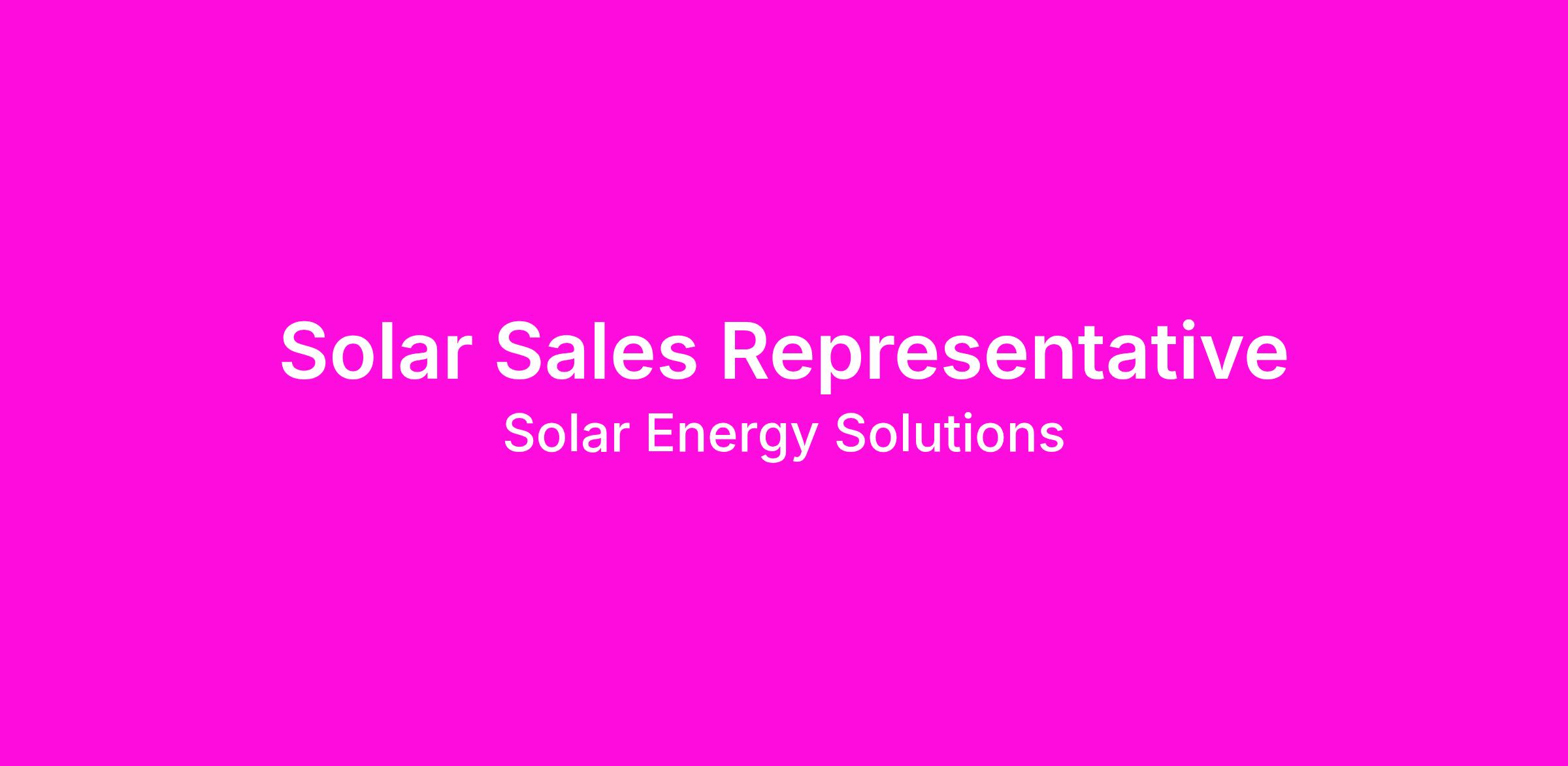 DescriptionAre you passionate about renewable energy and eager to make a positive impact on the environment? Solar Energy Solutions (SES) is looking for dynamic and enthusiastic Solar Sales Representatives to join our vibrant team! As a key player in our sales force, you will have the exciting opportunity to connect with homeowners and businesses, helping them discover the benefits of switching to clean, solar energy.