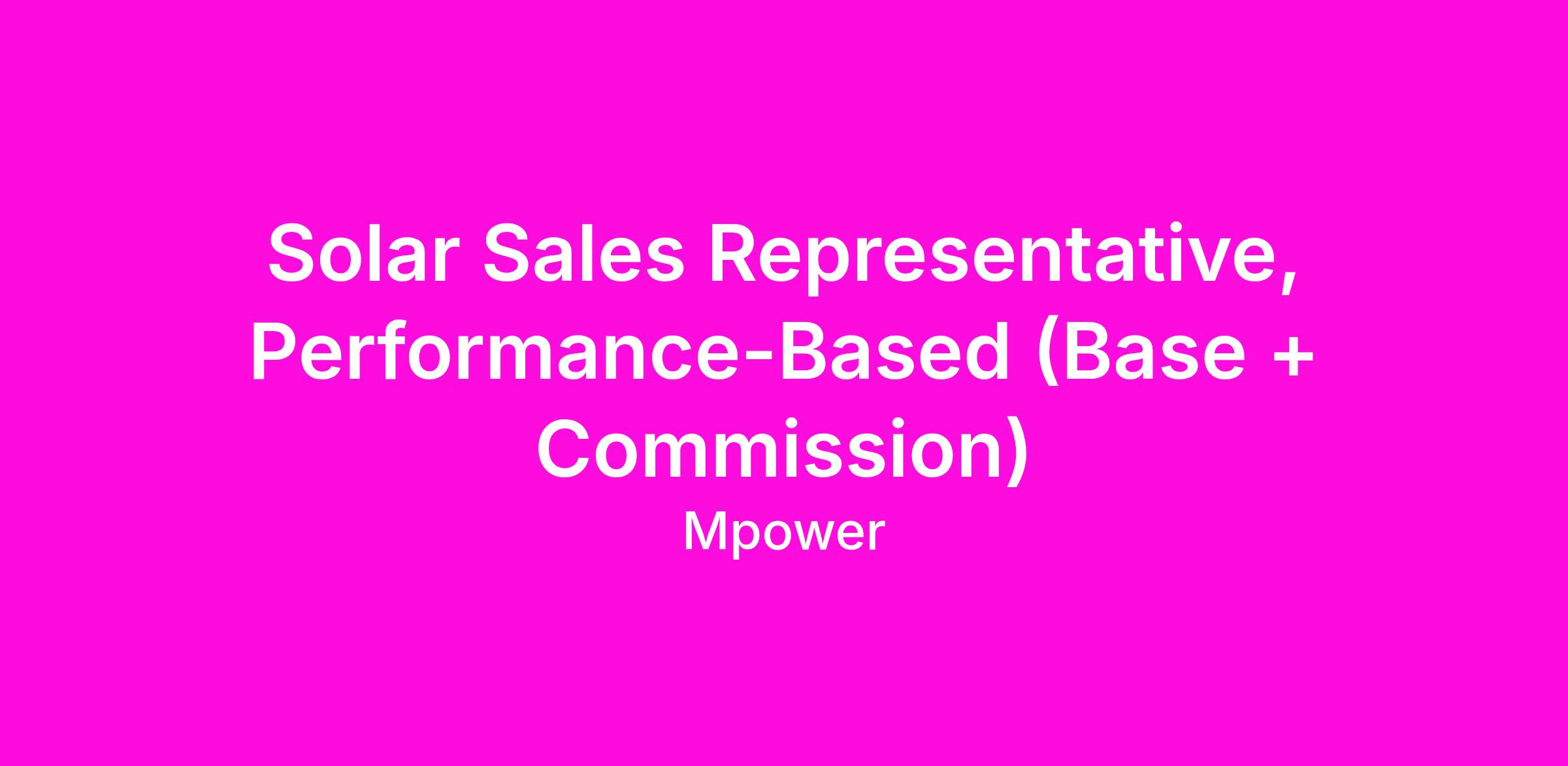 Mpower Solar is hiring driven sales professionals to build six-figure careers in New York’s growing solar market. This is a full-time, face-to-face, door-to-door sales role for individuals who want their income determined by effort, skill, and execution.