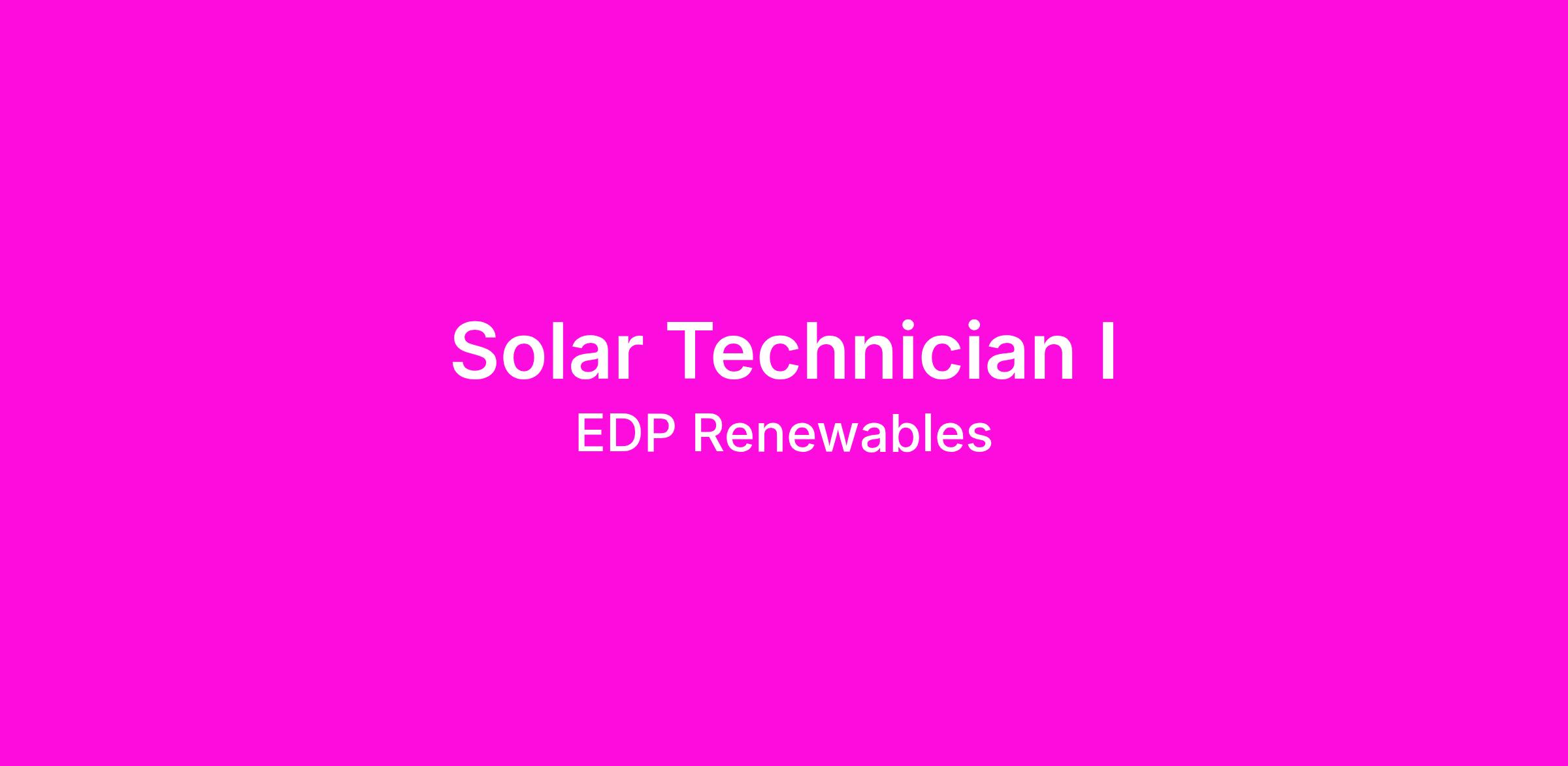 The Solar FST I will be responsible for the on-site operations, maintenance, repairs, and replacement of equipment at one of EDPR NA’s operating solar generation sites. Responsibilities will include but are not limited to completing Lock-Out-Tag-Out (LOTO), Tail Board, and job specific documentation that is required to conduct PV solar system maintenance in the safest manner possible. You will also perform inspections of equipment, tools, and facilities for compliance with EDPR policies, governmental safety guidelines, and environmental regulations.