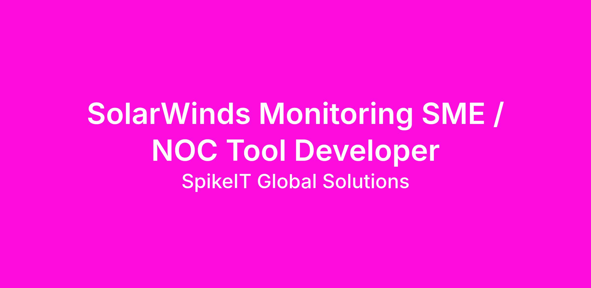 Job title: SolarWinds Monitoring SME / NOC Tool Developer