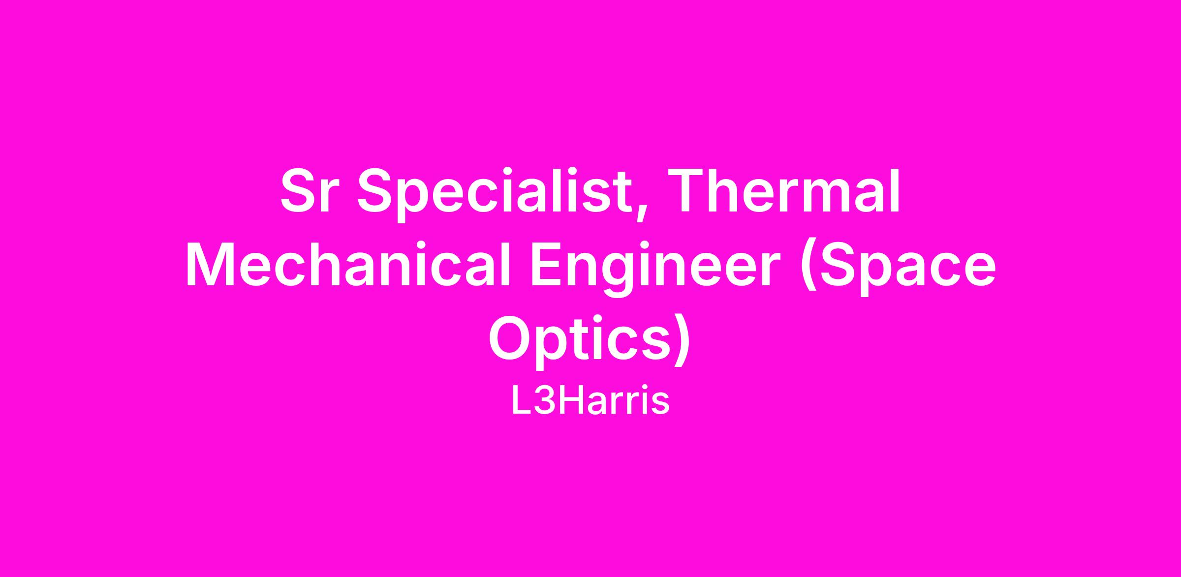 Job Title: Sr Specialist, Thermal Mechanical Engineer (Space Optics)