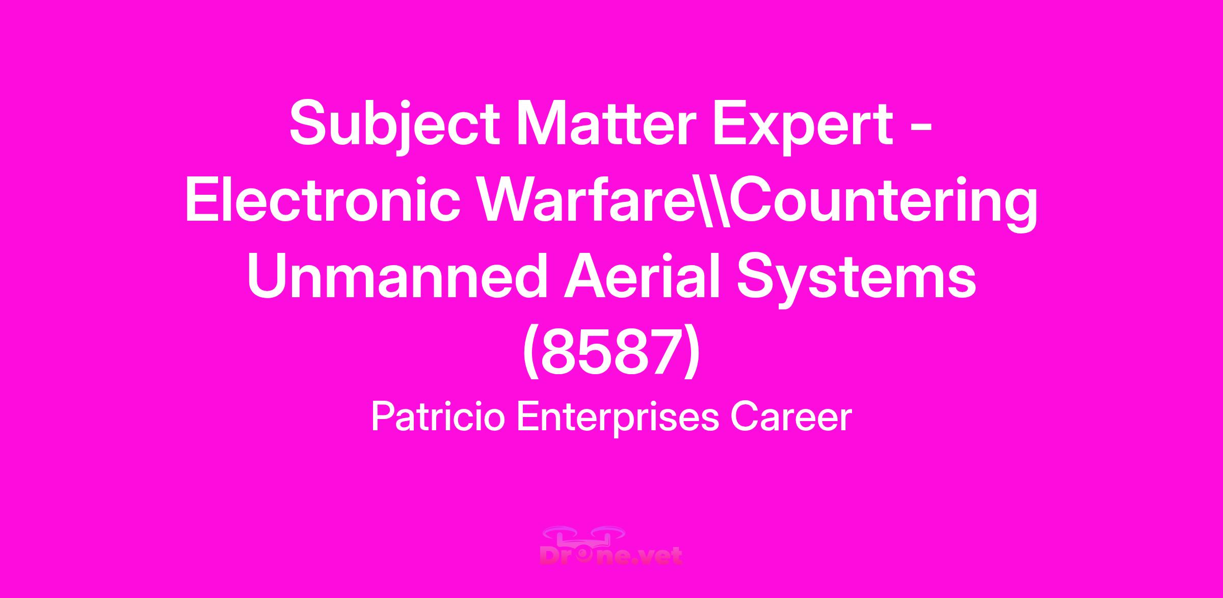 DESCRIPTION: Patricio Enterprises, Inc. is recruiting to fill a Signals Analyst/Subject Matter Expert – Senior (EW/CUAS) position in support of USSOCOM.