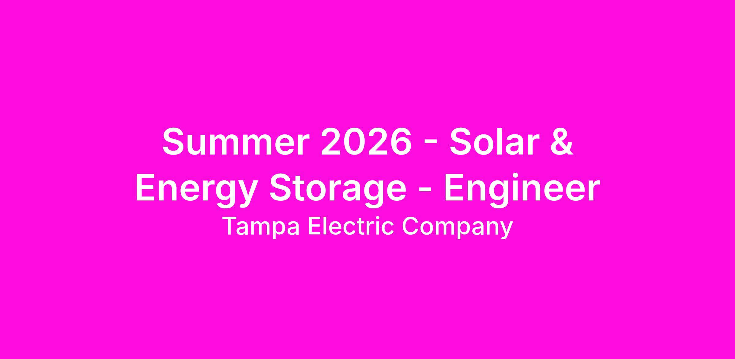 Title: Summer 2026 - Solar & Energy Storage - Engineer