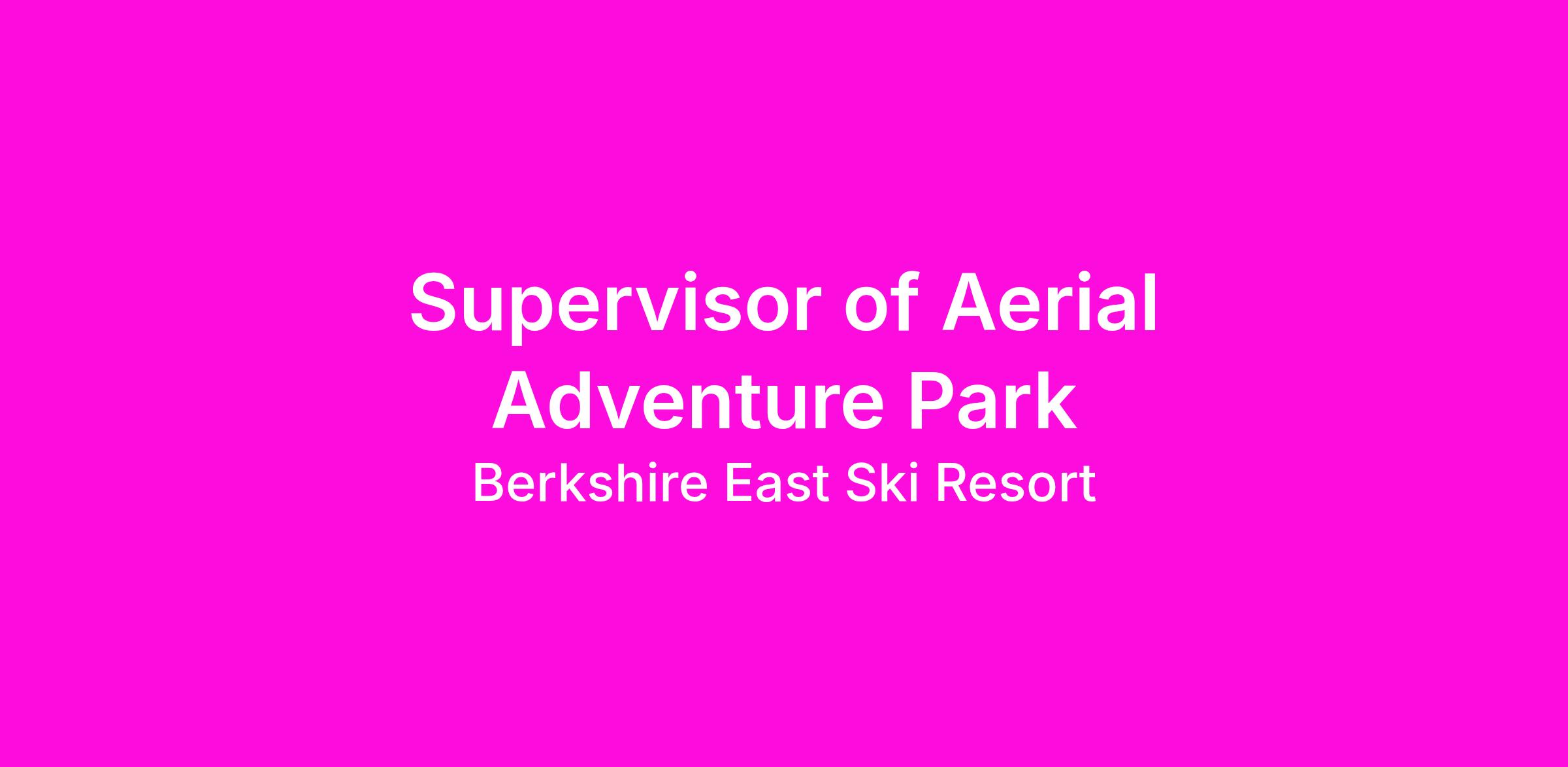 - Supervise all staff in Aerial Adventure Park and Treehouse Play Area