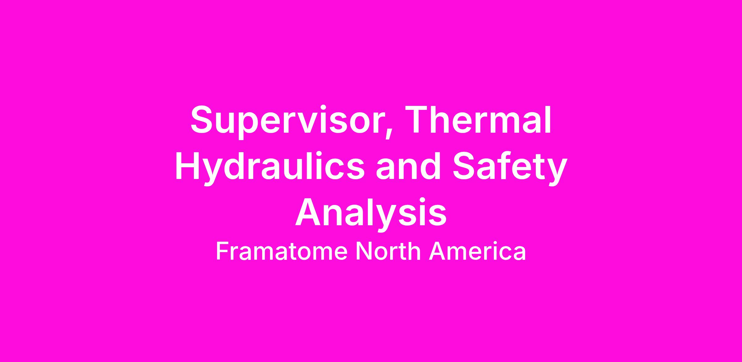 Supervisor, Thermal Hydraulics and Safety Analysis