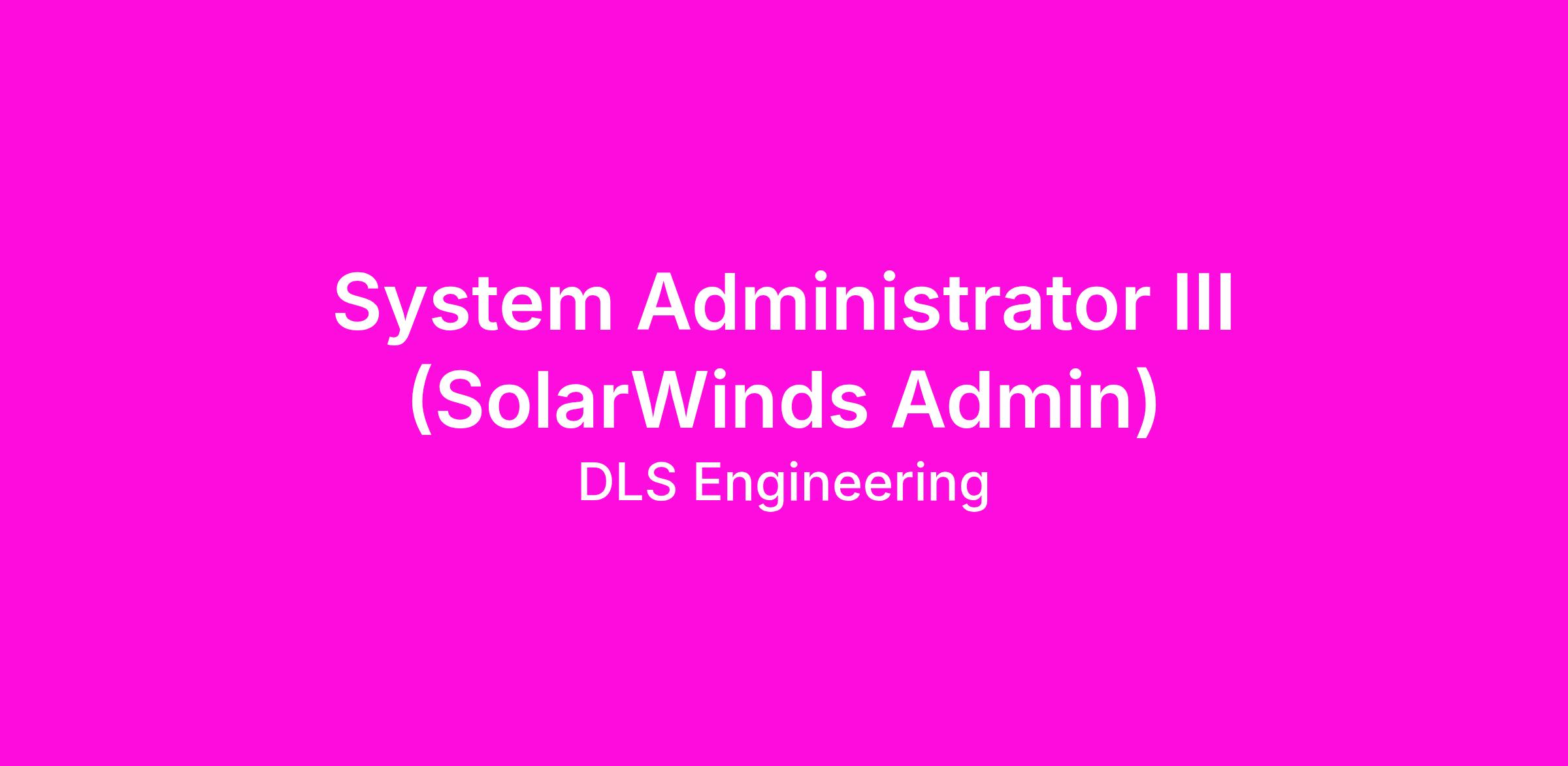 DLS Engineering is seeking a System Administrator III (SolarWinds Admin) professional for a full-time position in support of the Air Force Intranet Control (AFINC) program at Gunter Annex in Montgomery, Alabama. This is an on-site position.
