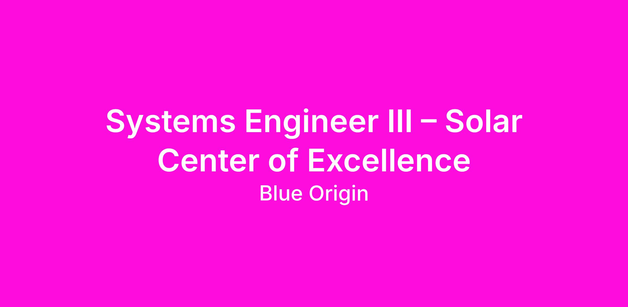 This role is part of Advanced Concepts and Enterprise Engineering (ACE), supporting Blue Origin’s mission of millions of people living and working in space for the benefit of Earth. The team fosters innovation and drives engineering workflows of the future, shared solutions and standards, simplicity and lower costs, and manufacturable design.As part of a hardworking team of specialists, technicians, and engineers, you will lead systems engineering activities for spacecraft solar array systems at Blue Origin's Solar Center of Excellence. In this role, you will drive the design, development, and manufacturing transition of next-generation photovoltaic power systems for multiple flight programs. This position requires deep technical expertise in solar array design and manufacturing, with responsibility for requirements management, interface control, verification & validation, and cross-functional coordination across the organization.
