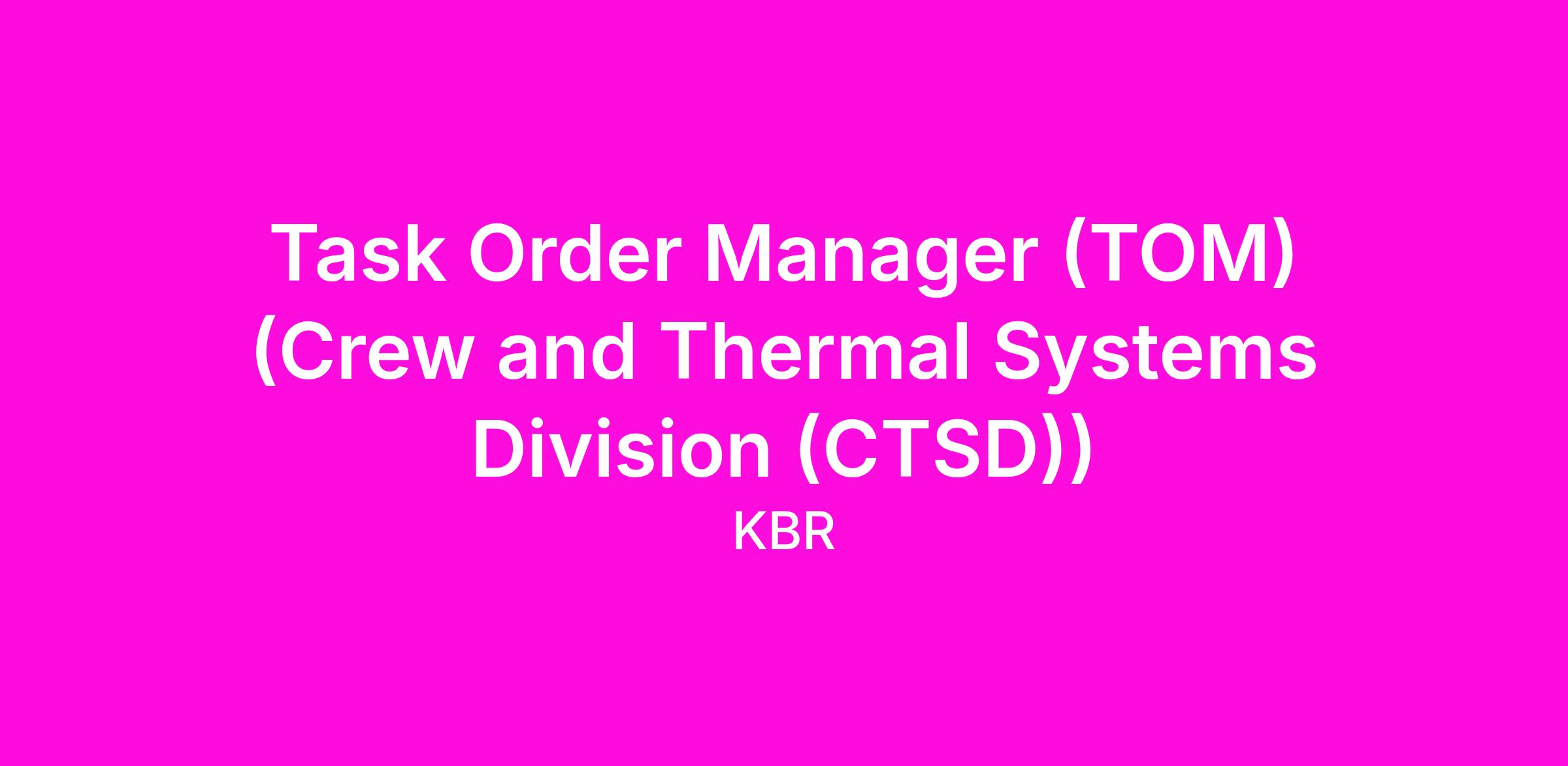 Task Order Manager (TOM) (Crew and Thermal Systems Division (CTSD))Belong. Connect. Grow. with KBR!