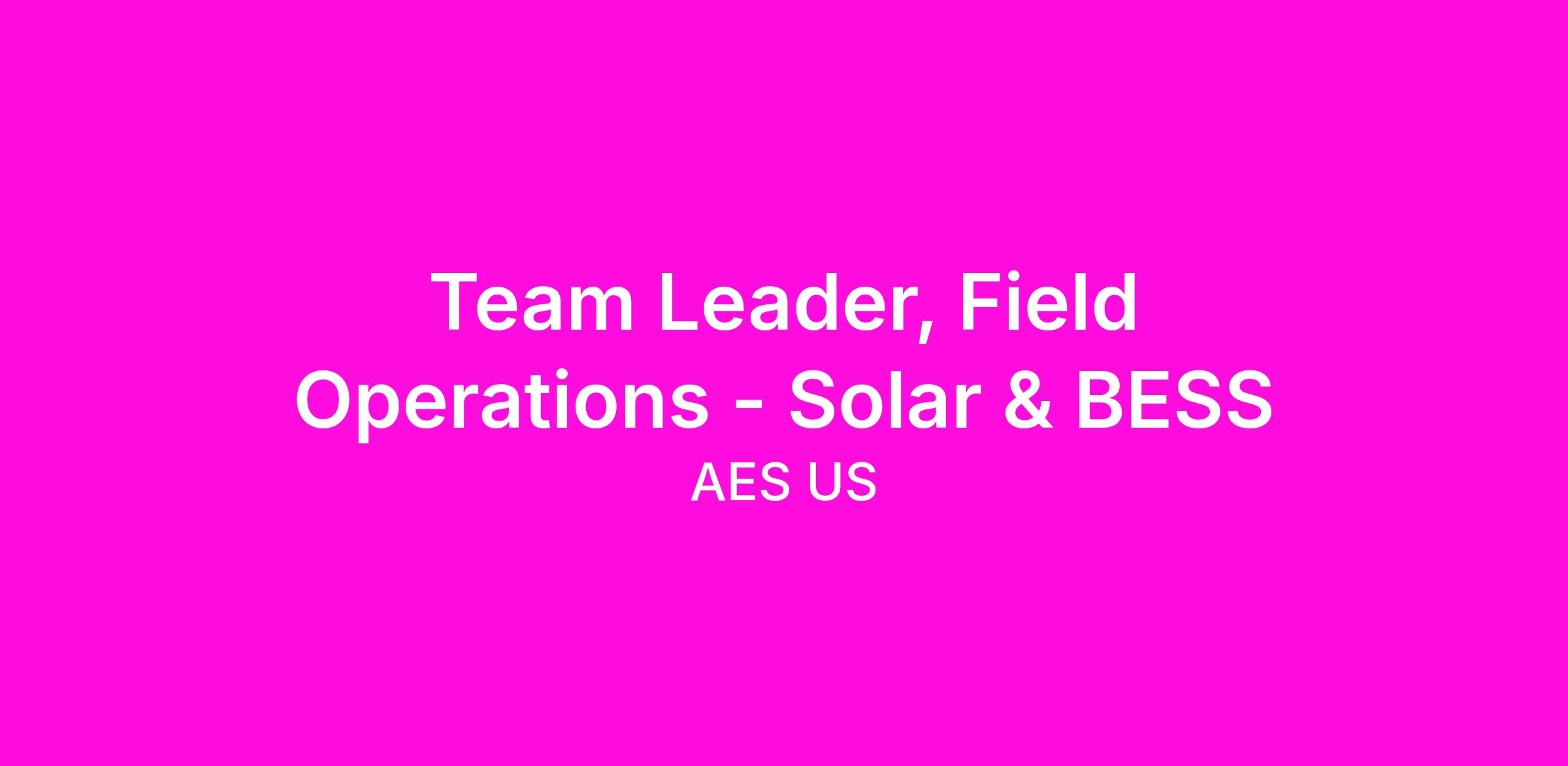 At AES Clean Energy, we’re accelerating the future of energy, together, while transforming customer experience and delivering unique customer products and solutions. We're looking for a Field Services Team Leader to support our expanding teams locally and help grow our portfolio of photovoltaic (PV) solar and solar+ Battery storage facilities while connecting the region to the broader Field Services network.