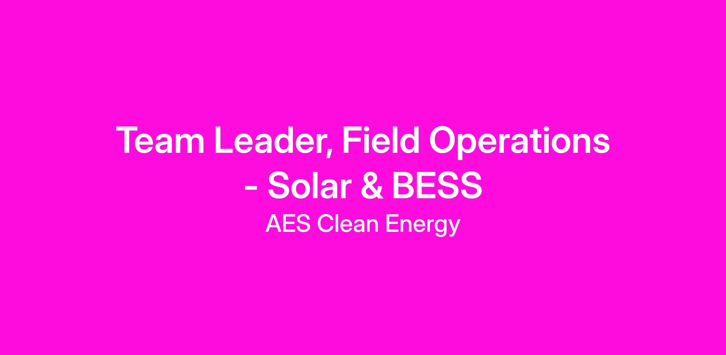 At AES Clean Energy, we’re accelerating the future of energy, together, while transforming customer experience and delivering unique customer products and solutions. We're looking for a Field Services Team Leader to support our expanding teams locally and help grow our portfolio of photovoltaic (PV) solar and solar+ Battery storage facilities while connecting the region to the broader Field Services network.
