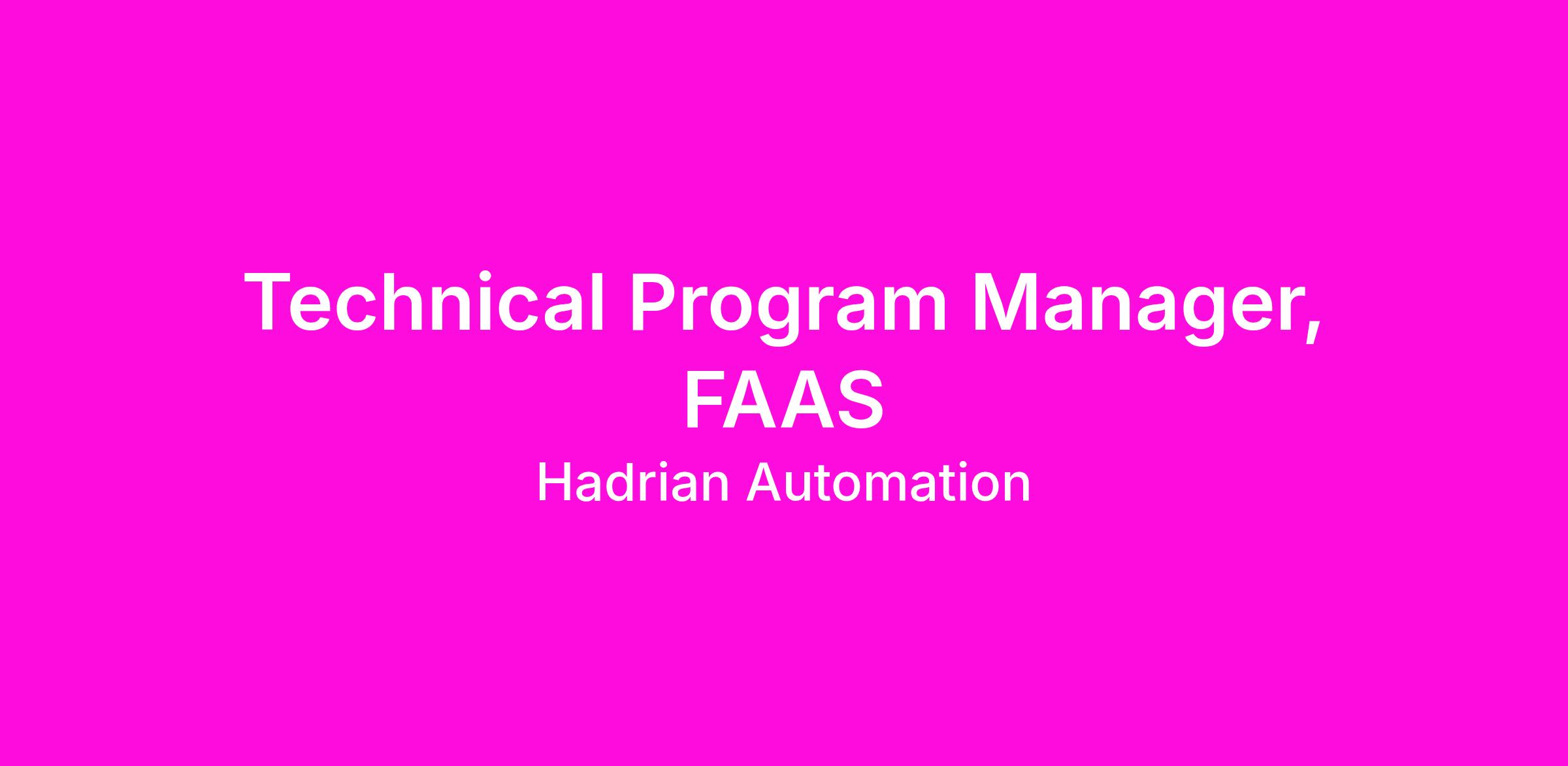 Technical Program Manager, FAAS