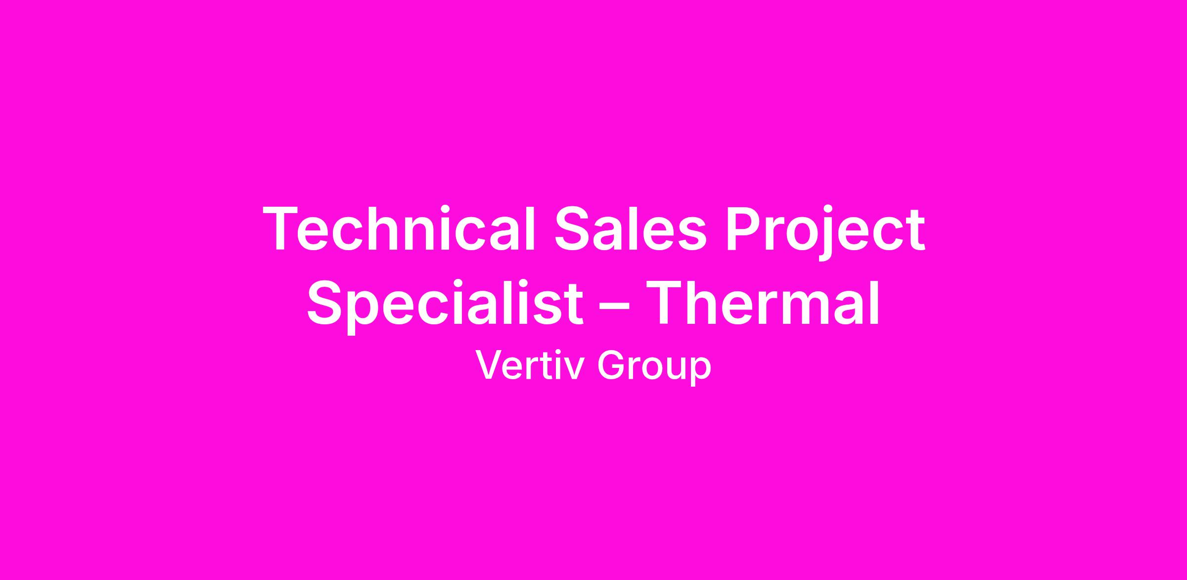 - The Technical Sales Project Specialist – Thermal is responsible for managing and coordinating cross-functional activities related to the scheduling and execution of factory witness tests and the administration of customer factory experience visits. This role ensures alignment among manufacturing, engineering, lab operations, and sales teams while delivering consistent, professional, and customer-focused experience at Vertiv laboratory and manufacturing facilities.