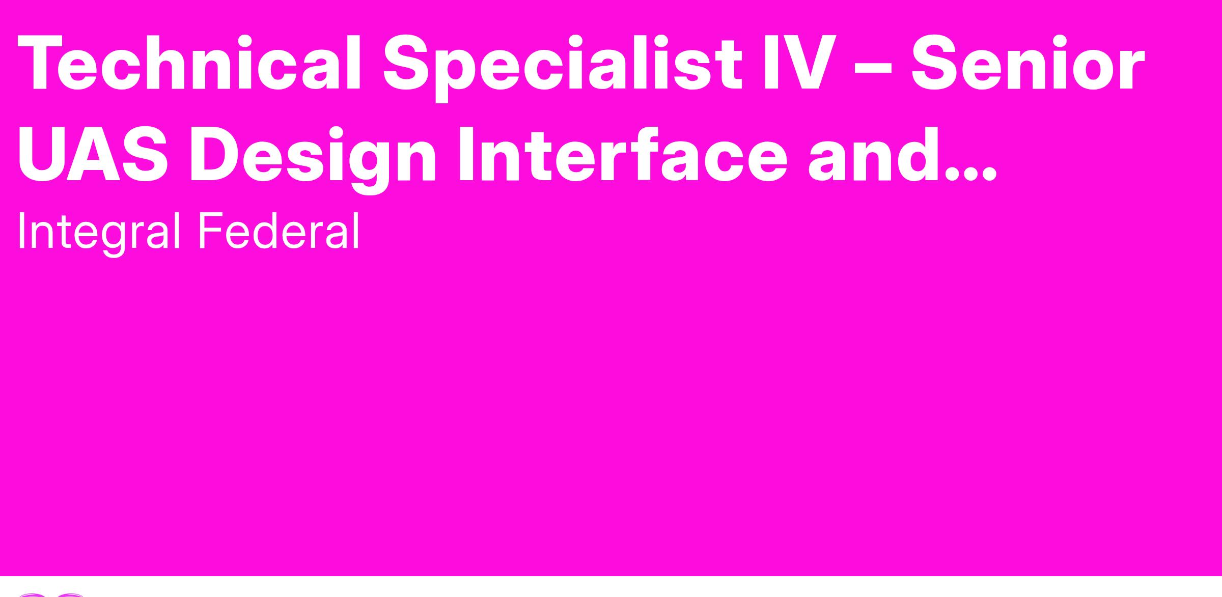 Technical Specialist IV – Senior UAS Design Interface and Technical Data Analyst