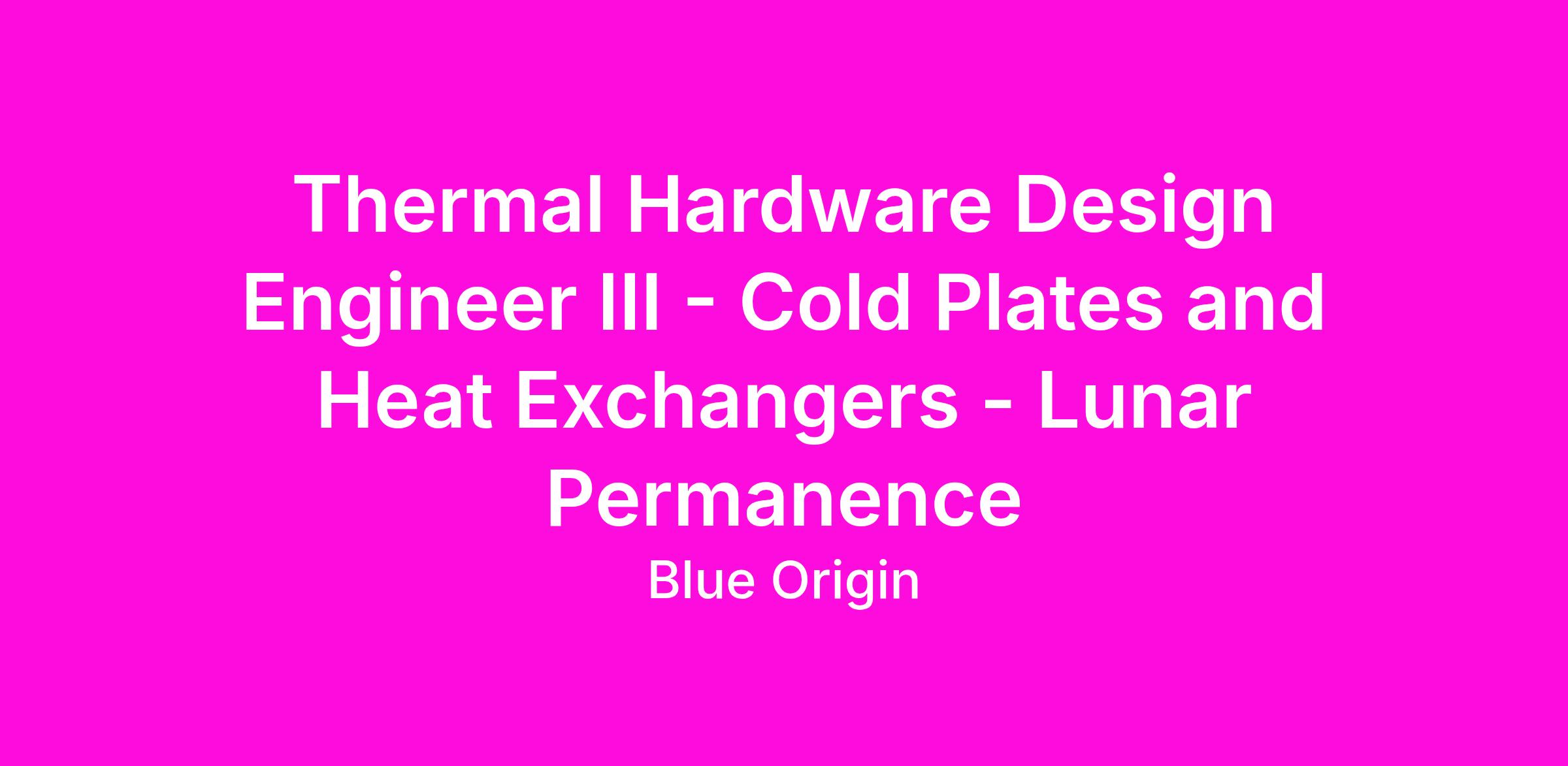 This role is part of the Lunar Permanence business unit, which develops Blue Origin’s Blue Moon landers and related products. To further Blue Origin's mission of millions of people living and working in space for the benefit of Earth, we are building sustainable infrastructure for our transport of crew and cargo from Earth to the lunar surface.As part of a hardworking team of engineers, you will contribute to the definition and development of spacecraft thermal control systems. You should be comfortable working in a fast-paced and often uncertain environment, contributing to innovative solutions, while demonstrating personal leadership, technical competence, and attention to detail.