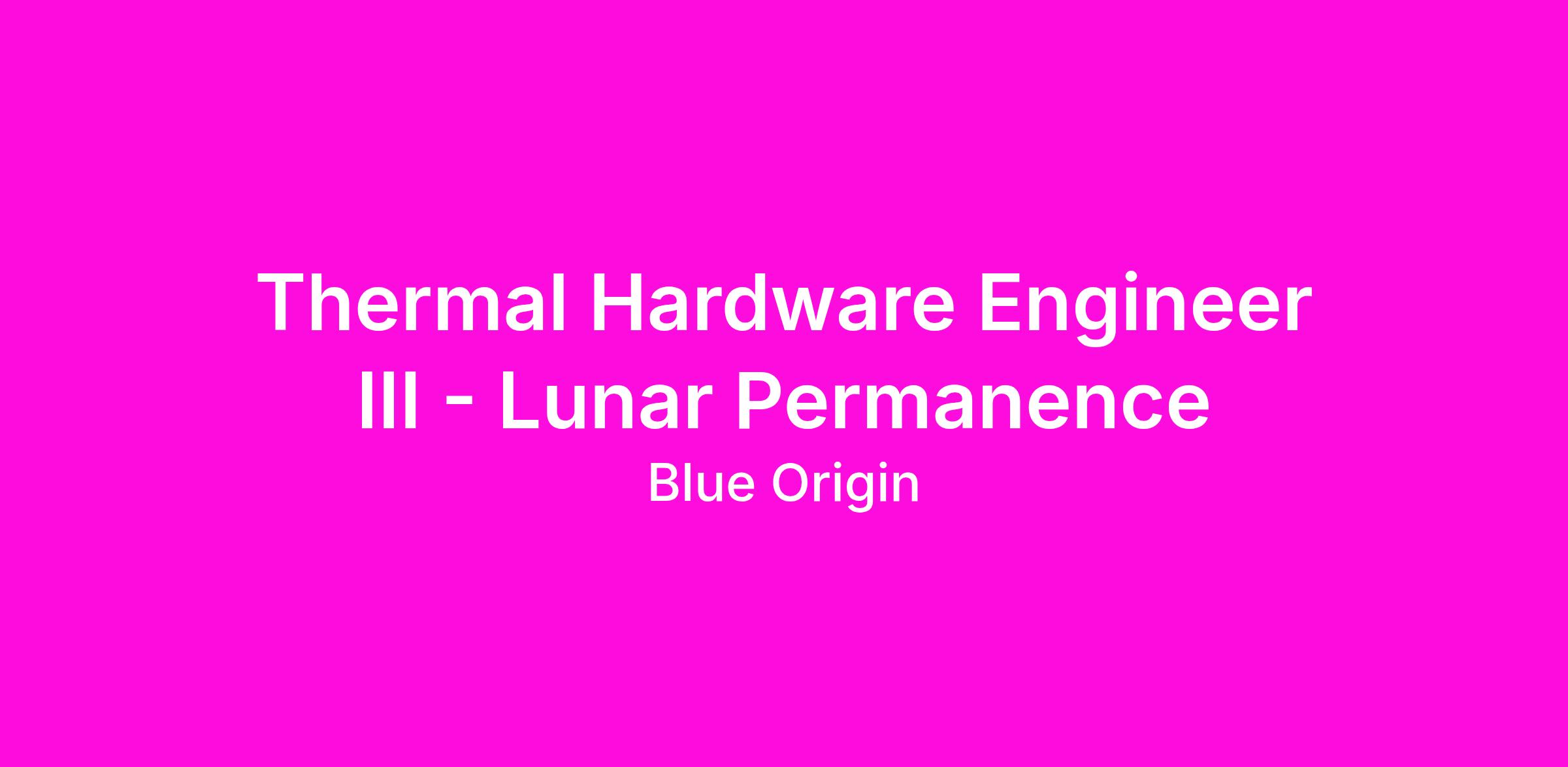 This role is part of the Lunar Permanence business unit, which develops Blue Origin’s Blue Moon landers and related products. To further Blue Origin's mission of millions of people living and working in space for the benefit of Earth, we are building sustainable infrastructure for our transport of crew and cargo from Earth to the lunar surface.As part of a hardworking team of engineers, you will contribute to the definition and development of spacecraft thermal control systems. You should be comfortable working in a fast-paced and often uncertain environment, contributing to innovative solutions, while demonstrating personal leadership, technical competence, and attention to detail. You will work directly with NASA and our National Team Partners as part of the Human Landing System (HLS) Sustaining Lunar Development (SLD) program. You will play a key role in developing the system that will return humans to the Moon.