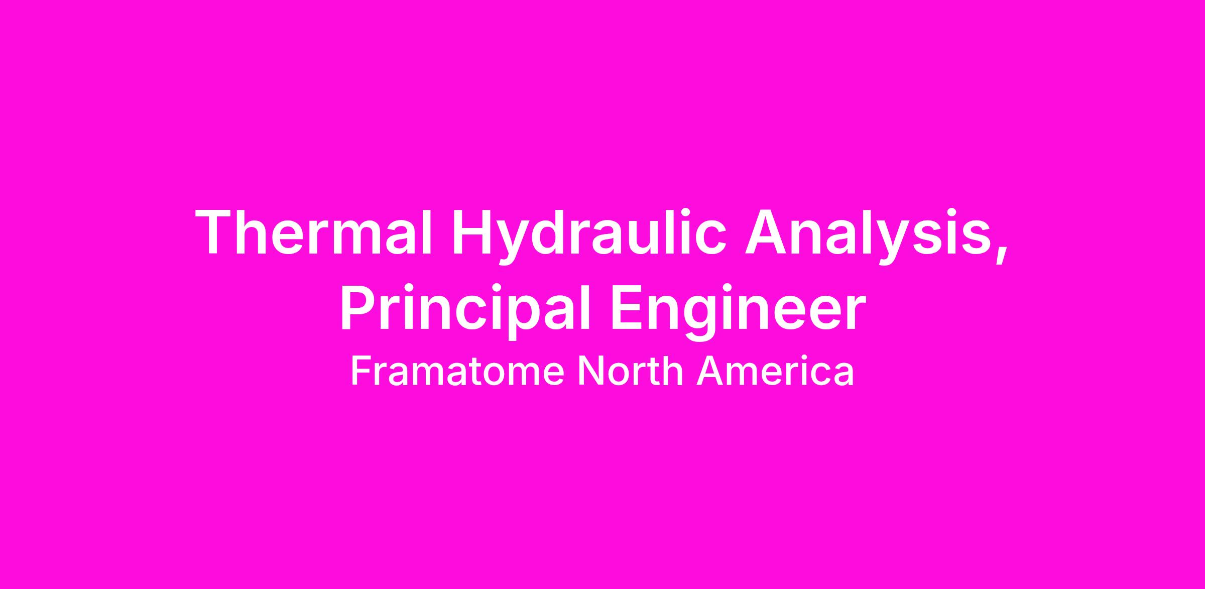 Thermal Hydraulic Analysis, Principal Engineer