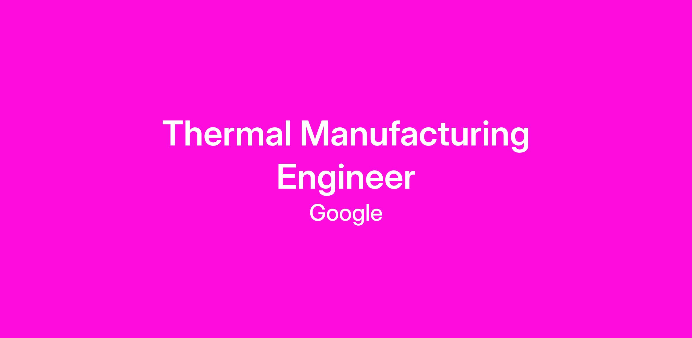 The Thermal Manufacturing Engineering team delivers cooling solutions for Google Cloud serving all of Google's functions and customers.