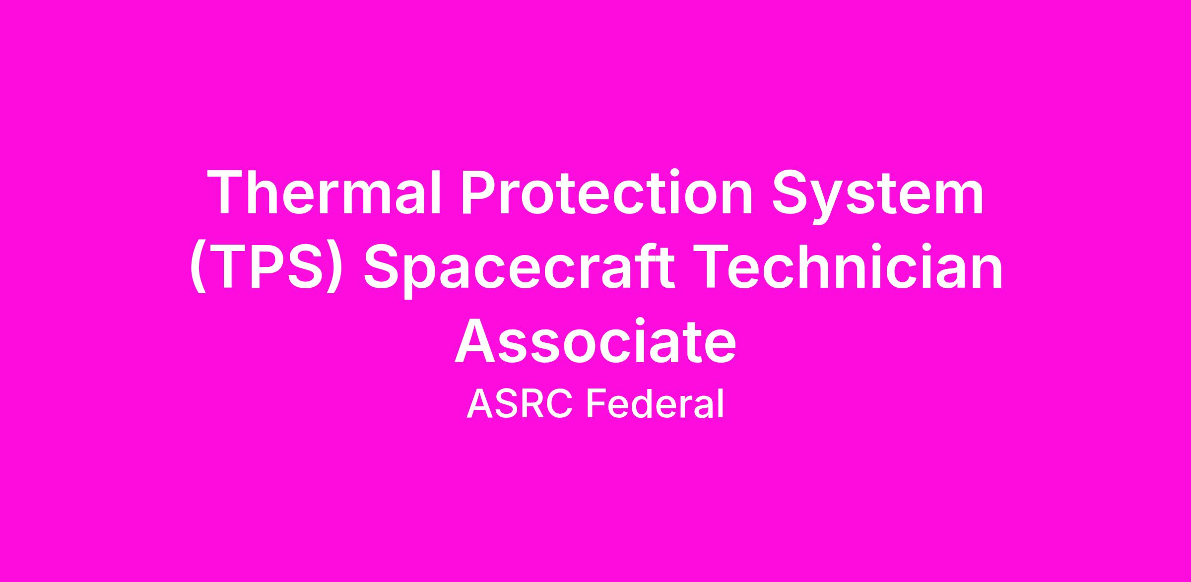 ASRC Federal System Solutions (AFSS) is seeking a Thermal Protection System (TPS) Technician, Associate to support Orion spacecraft processing operations at Kennedy Space Center.