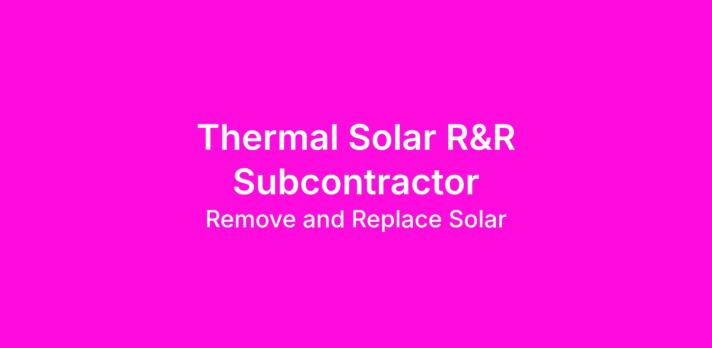 The Thermal Solar R&R Subcontractor We're Looking For: