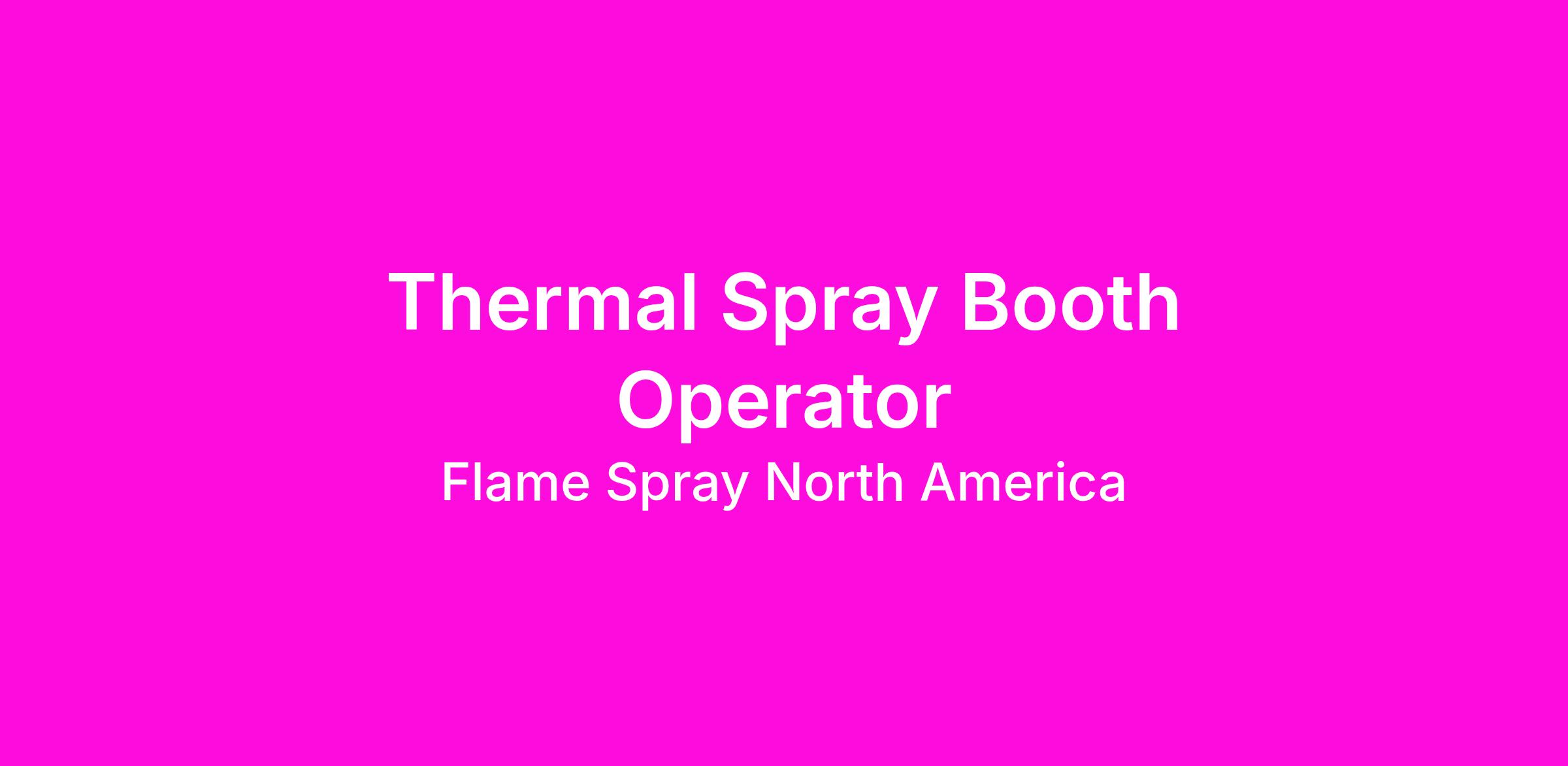 This position is responsible for operating the thermal spray booth as per verbal and written shop floor instructions.
