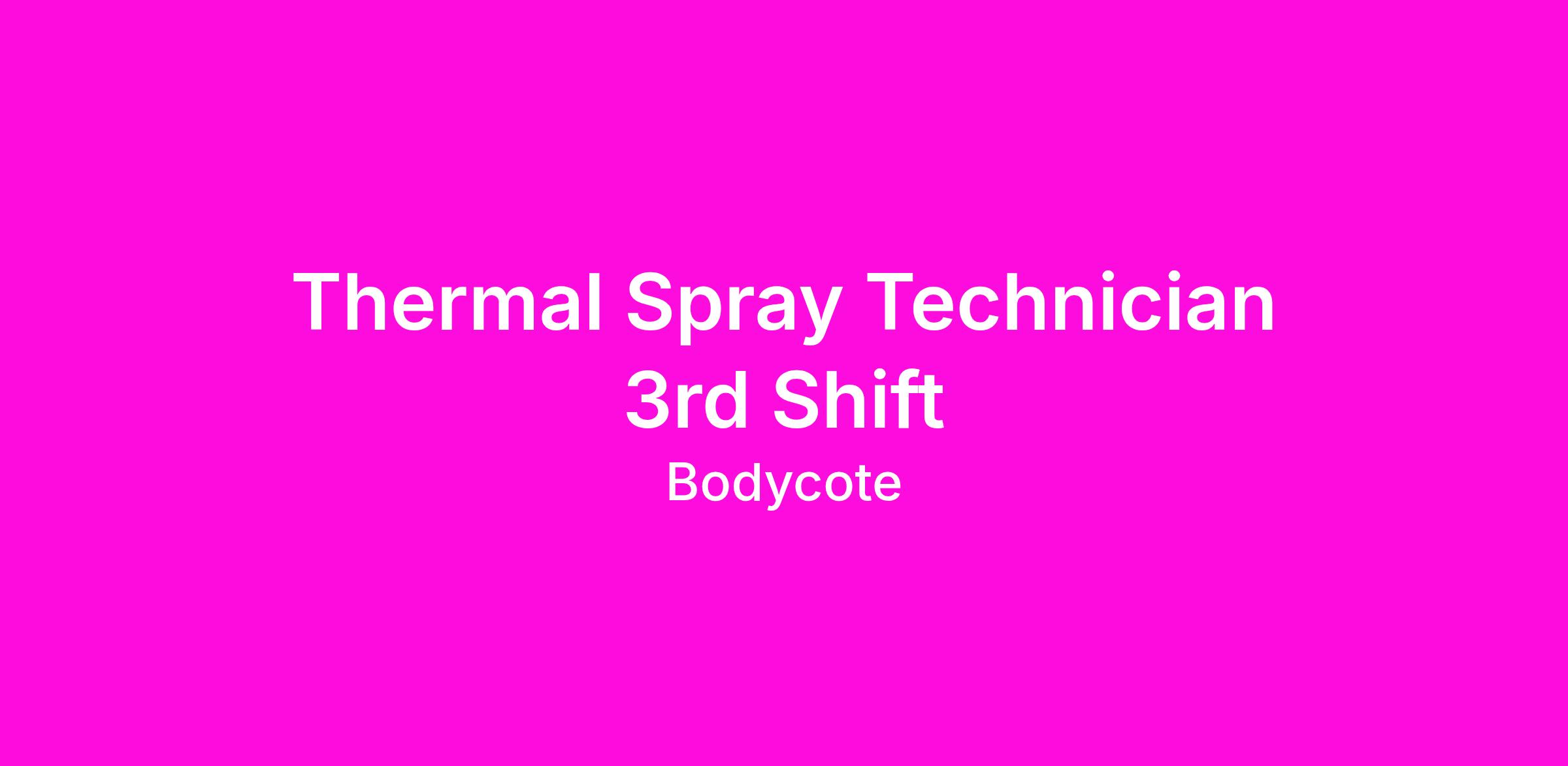 Summary: The Thermal Spray Technician is responsible for performing HVOF, plasma, and/or other thermal spray coating operations per customer requirements and job folder specifications.