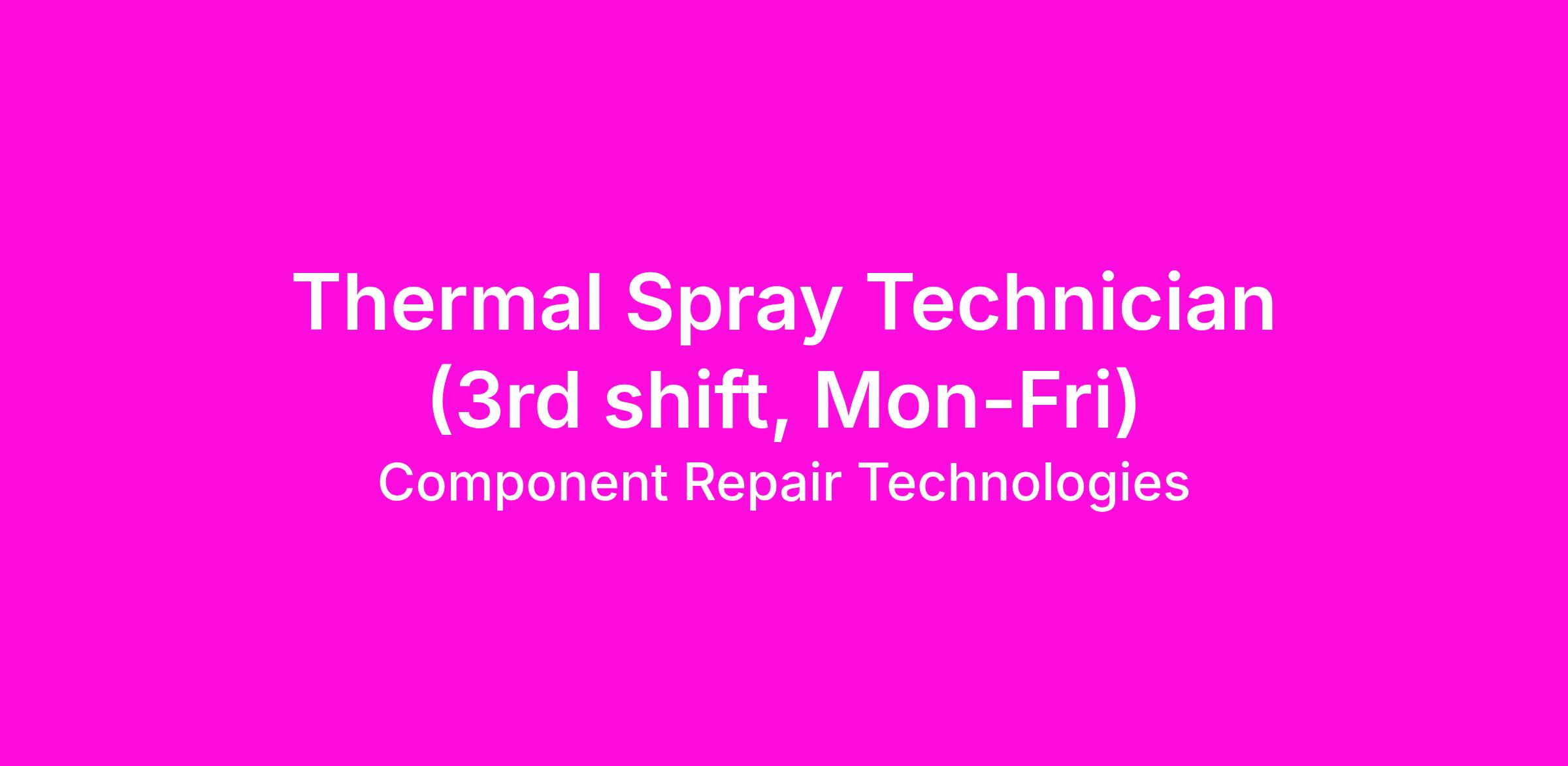 Keywords: thermal spray technician, thermal spray operator, thermal spray coating, thermal spray process, thermal spray application, HVOF coating technician, plasma spray technician, metal spray technician, coating technician aerospace, industrial coating technician, manual thermal spray, CNC thermal spray, CNC spray operator, coating application specialist, dimensional restoration coating, turbine engine coating, turbine component coating, aerospace coating technician, high-temperature coatings, thermal barrier coatings, surface preparation technician, aerospace MRO jobs, aircraft engine repair jobs, turbine engine repair technician, jet engine component repair, Safran Aircraft Engines jobs, aviation maintenance careers, aerospace manufacturing technician, aerospace overhaul technician, aircraft parts repair, CFM56 LEAP engine support, sustainable aviation technologies, entry level manufacturing, on-the-job training, OJT, hands-on technical training, manufacturing apprenticeship, learn a skilled trade, training provided technician, micrometer experience, dial indicators, go/no-go gauge, precision measurement tools, blueprint reading, shop drawing interpretation, shop math, overhead crane operation, grit blasting technician, masking and de-masking, part preparation technician, CNC operation, hand tools technician, mechanical aptitude, quality control technician, gauge measurement technician, part finishing technician, safety protocol compliance, PPE required, respirator fit test, manufacturing safety standards, process documentation, ability to lift 50 pounds, standing for long periods, repetitive tasks manufacturing, hand-eye coordination, power tools, dust and heat environments, Component Repair Technologies careers, CRT jobs Mentor Ohio, Safran jobs Ohio, aerospace jobs Cleveland area, Center of Excellence aviation repair, full benefits manufacturing, no premium healthcare, 401k match, tuition reimbursement, paid training, PTO, shift premium jobs, second shift jobs, third shift jobs, climate-controlled facility, manufacturing jobs with training, aerospace technician jobs Ohio.