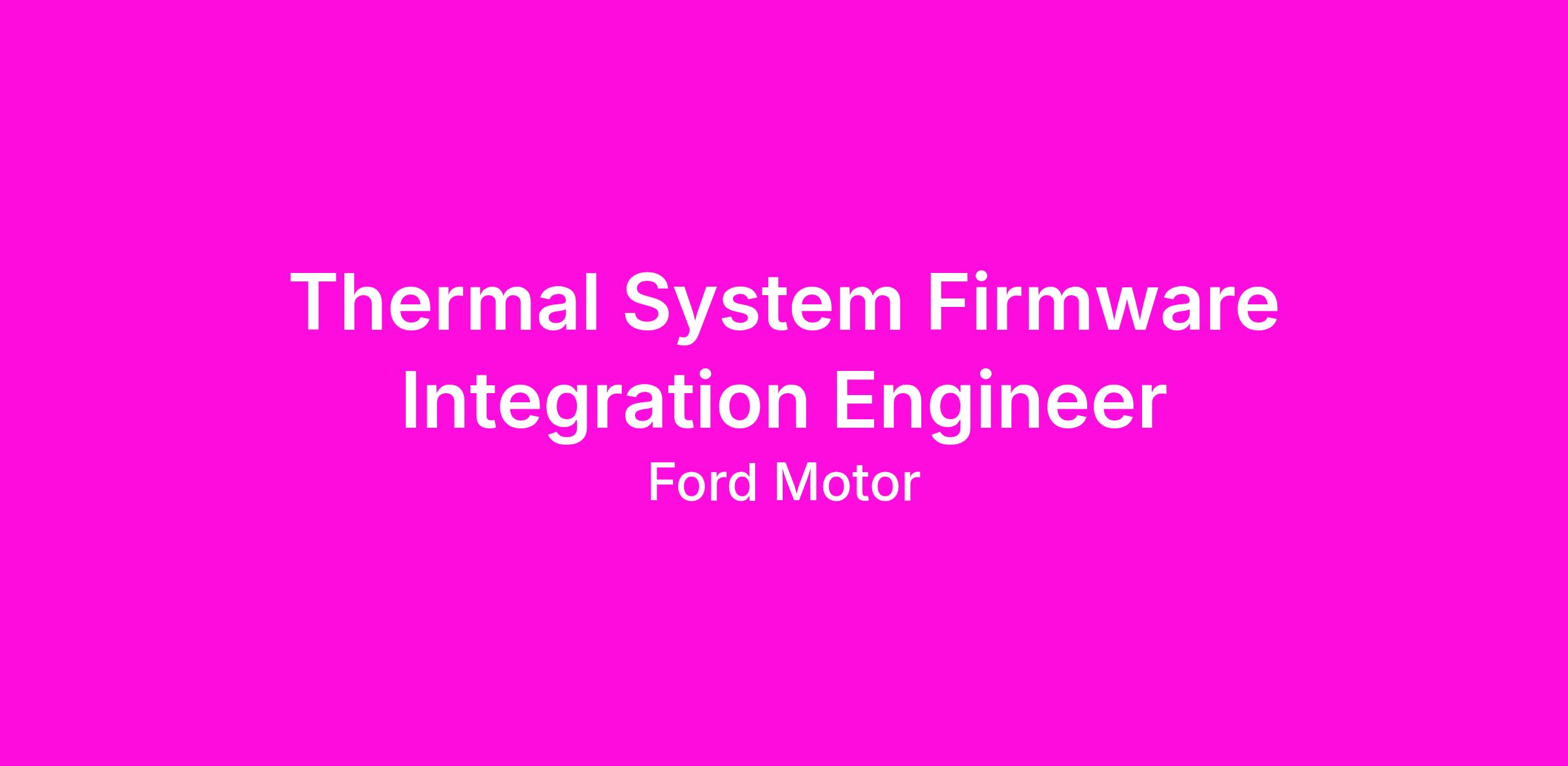 Ford is seeking an experienced Integration Engineer to be a key contributor to the development of next-generation Thermal Systems. As the automotive industry shifts to highly integrated software defined vehicles, the Thermal System has become a critical cross functional system – managing everything from cabin comfort to the precise thermal regulation of power electronics and high voltage batteries.
