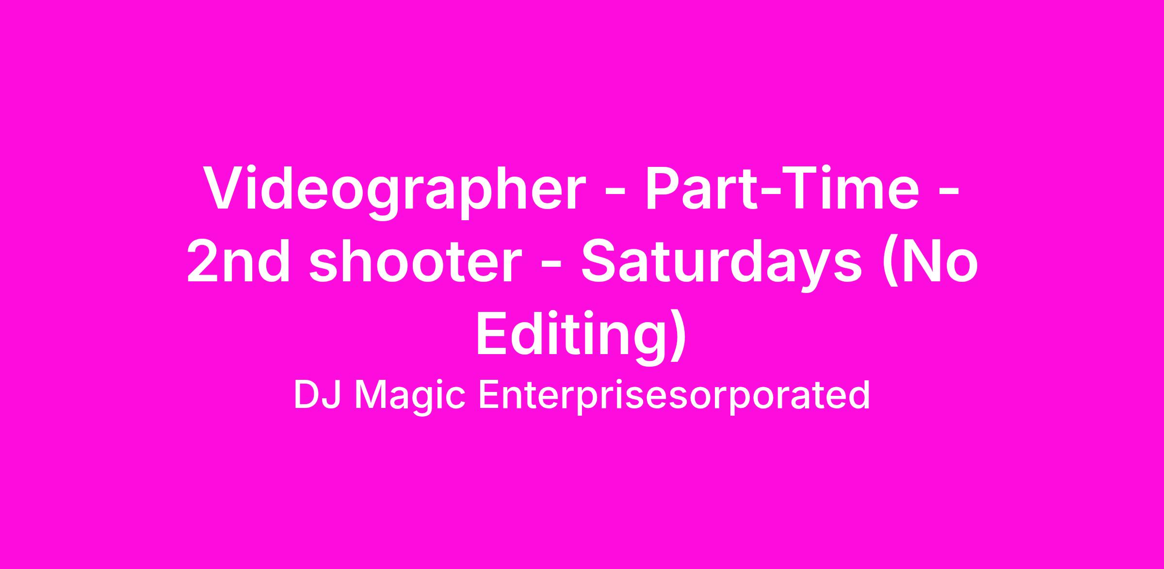 Videographer - Part-Time - 2nd shooter - Saturdays (No Editing)